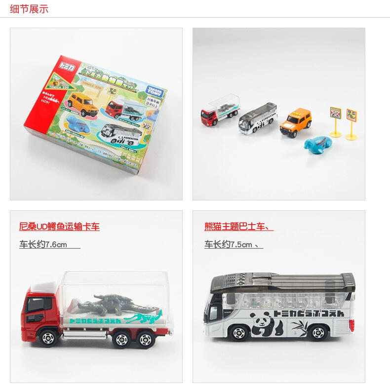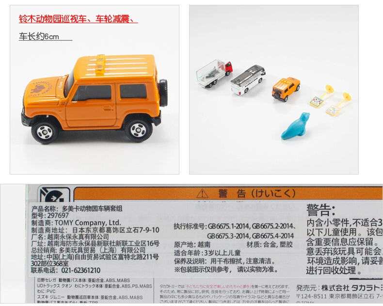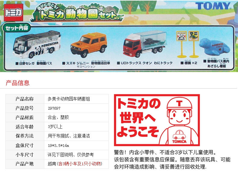 多美卡动物园观光车(日野S'elega)、多美卡动物园的展示卡车(日野S'elega)、多美卡动物园巡逻车(铃木JIMNY),在多美卡小镇的动物园的工作车作为礼物套