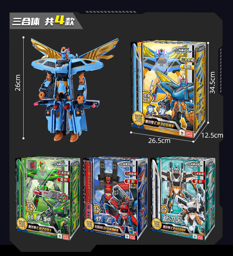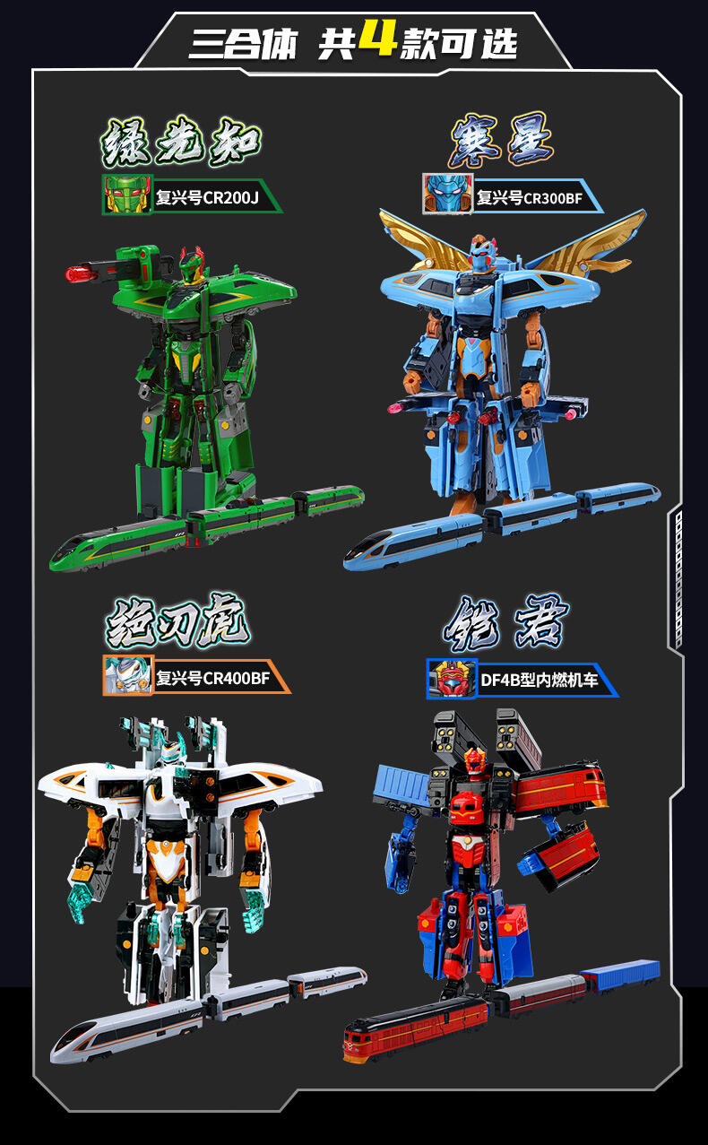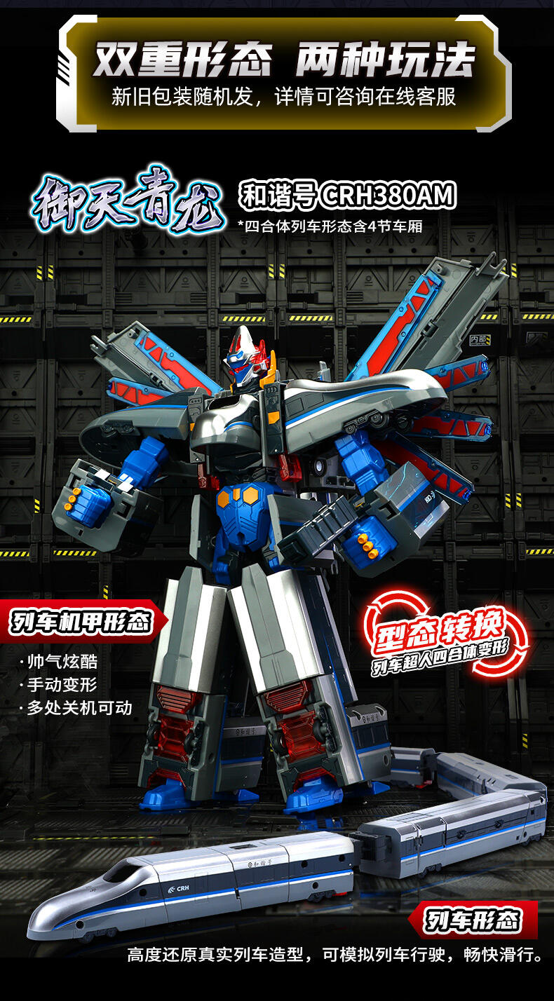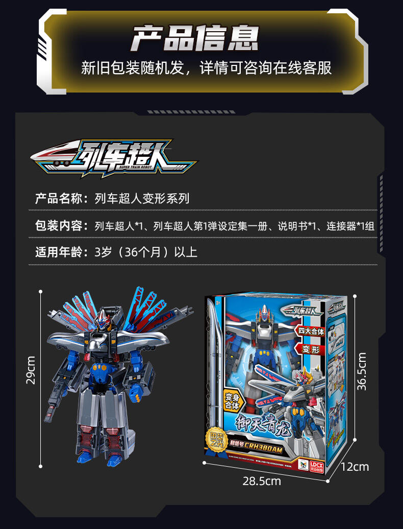 | 中国铁道博物馆官方监制,携手打造代表中国高铁文化的“国民玩具”! 两种形态,自由切换:列车形态高度还原真实列车造型、机甲形态帅气炫酷! 两种玩法,趣味十足:列车玩法模拟列车行驶,畅快滑行、机甲玩法手动变形,多处关节可动。 |