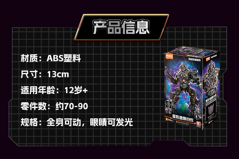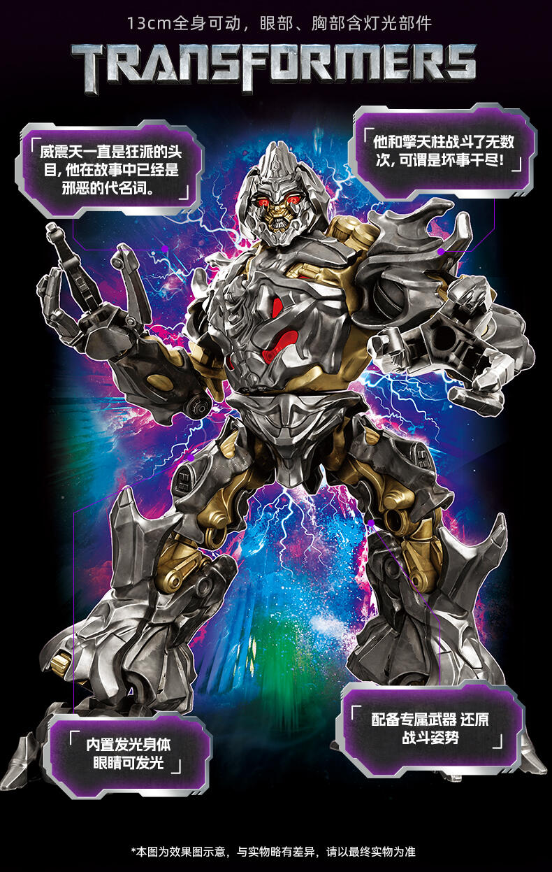 1、变形金刚IP 2、变形金刚电影1造型 3、多处关节可转动 4、收藏价值、发光