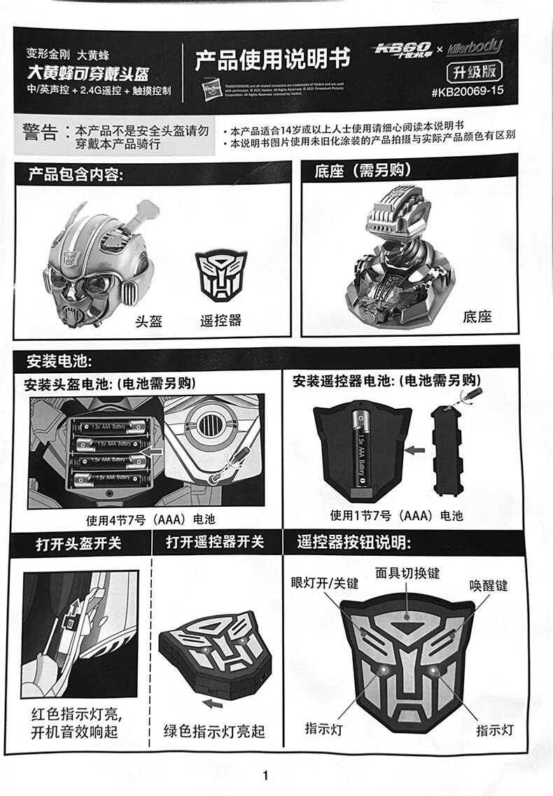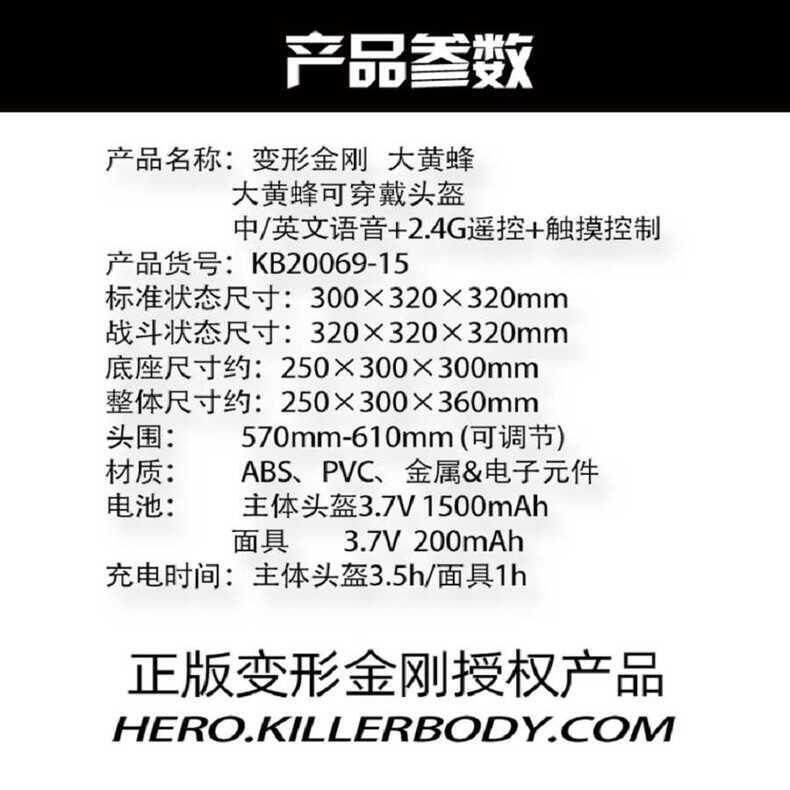 Killer Body 变形金刚大黄蜂 收藏级可穿戴头盔