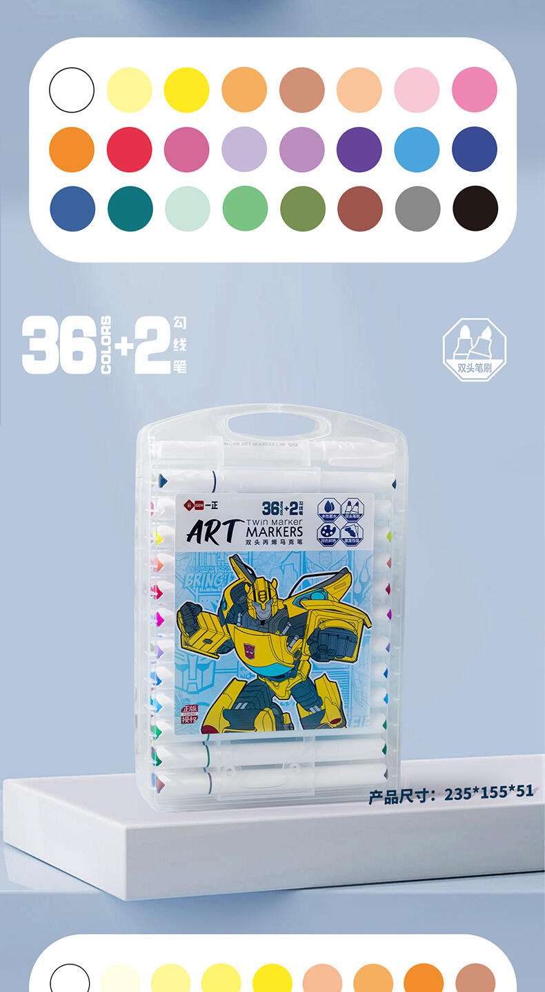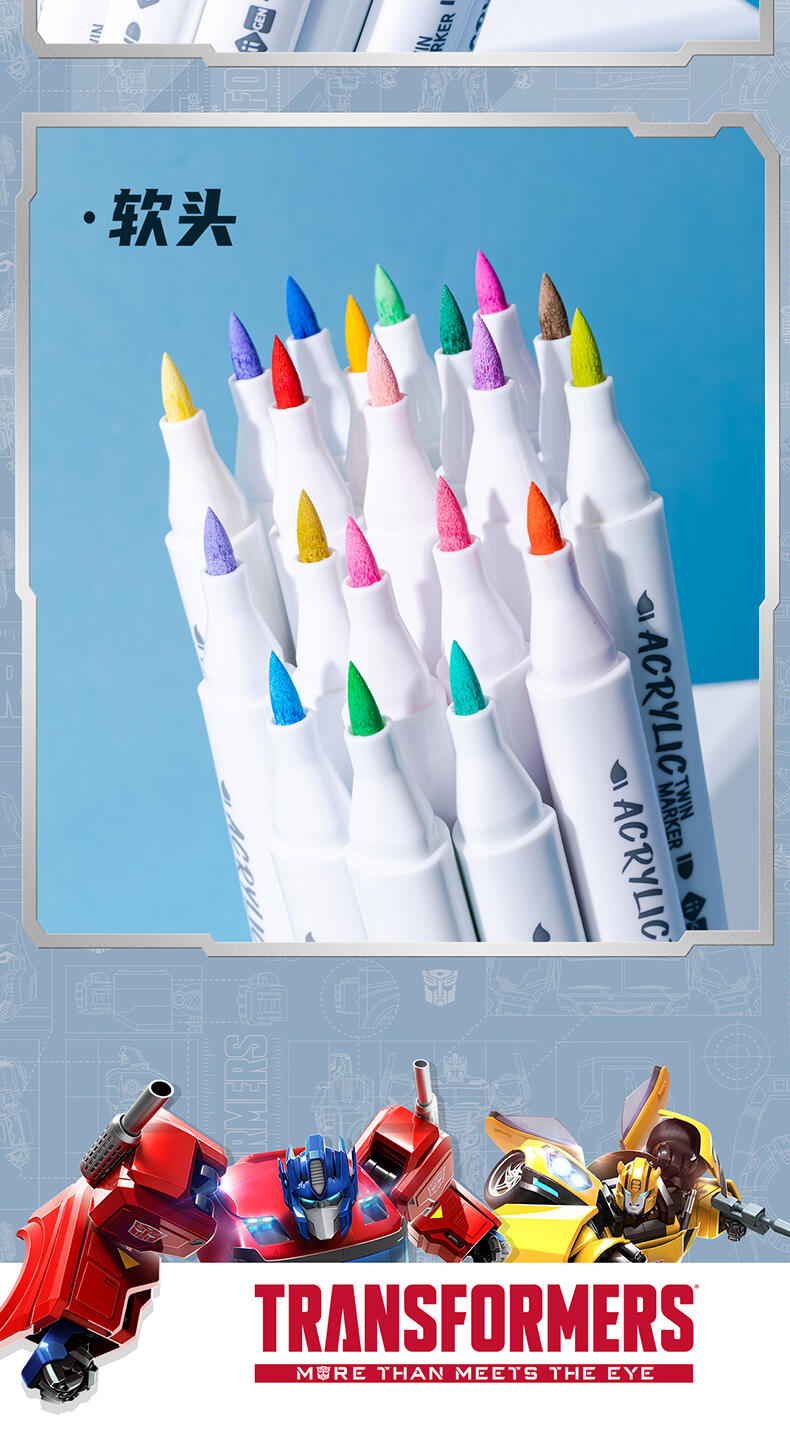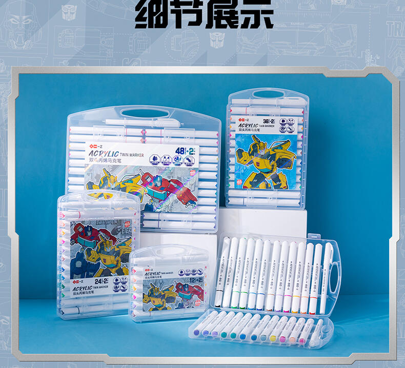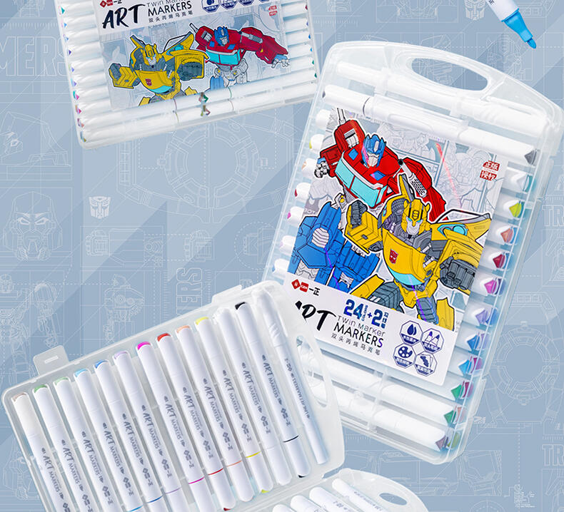 一正 变形金刚双头丙烯马克笔(24支装+2支勾线笔) - 随机发货
