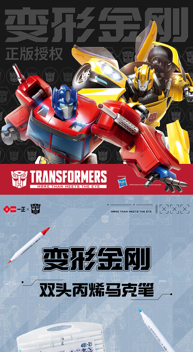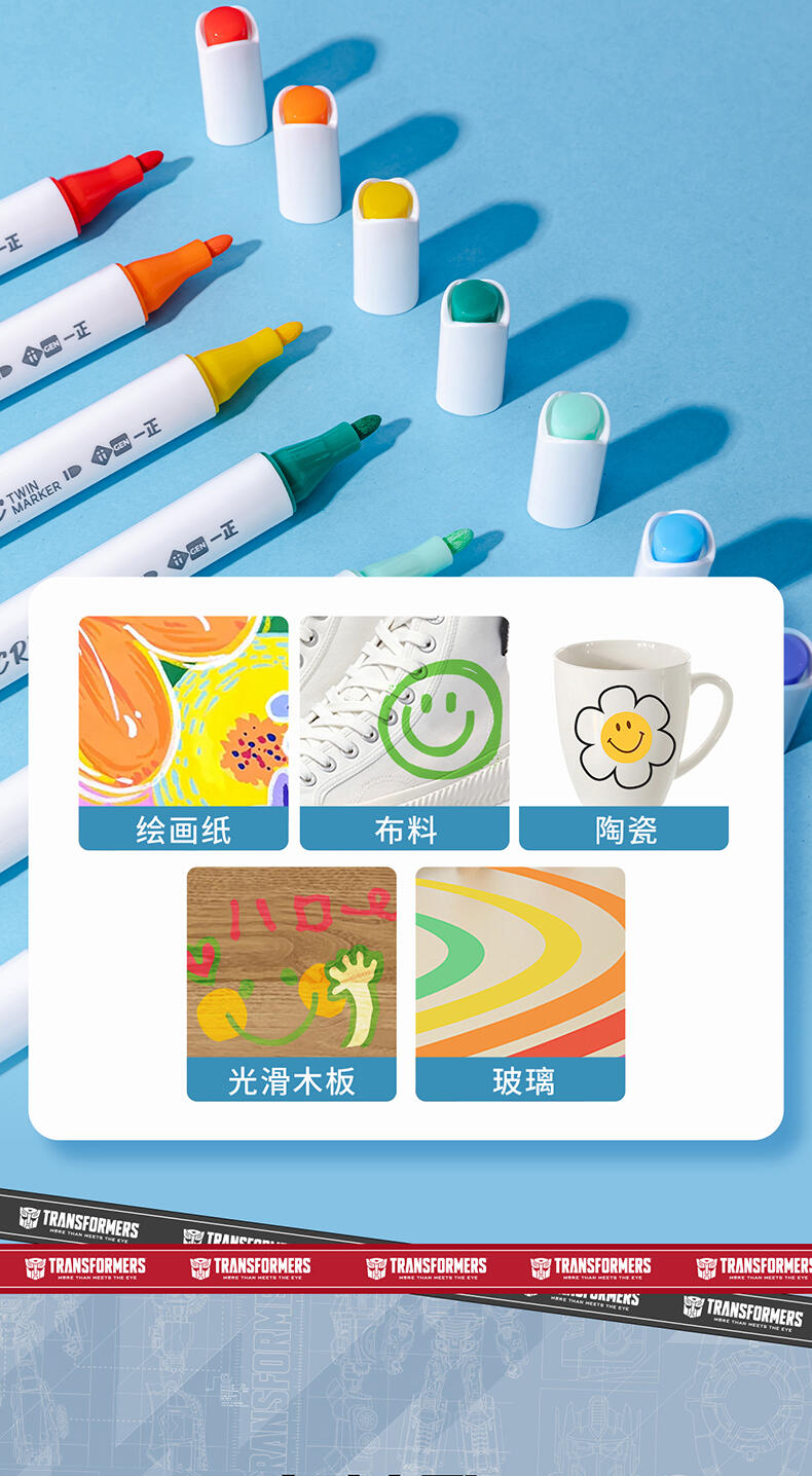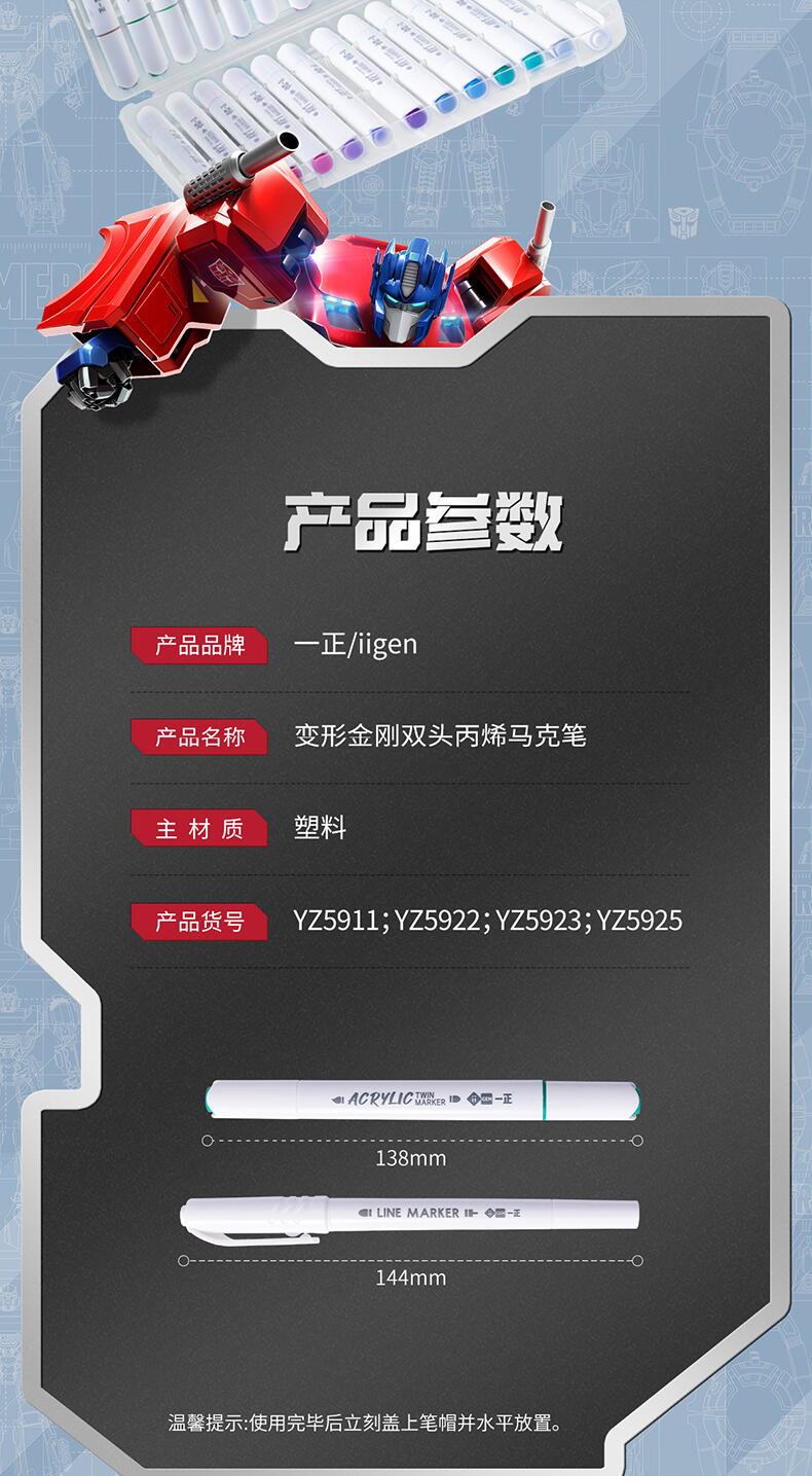 一正 变形金刚双头丙烯马克笔(24支装+2支勾线笔) - 随机发货