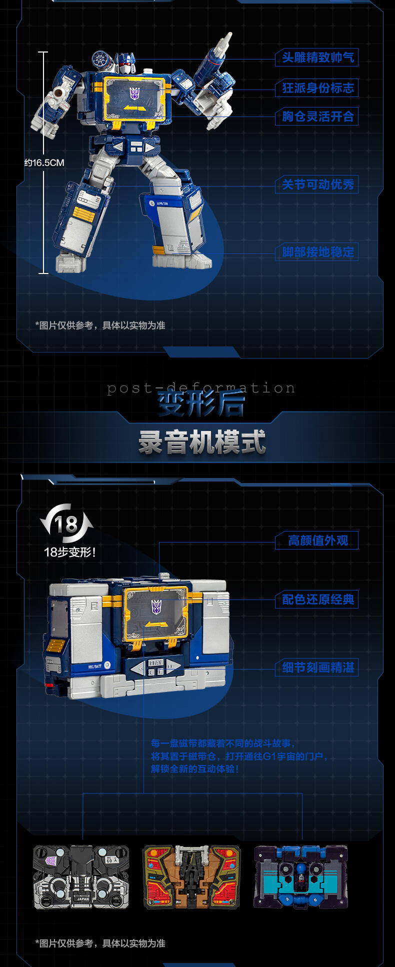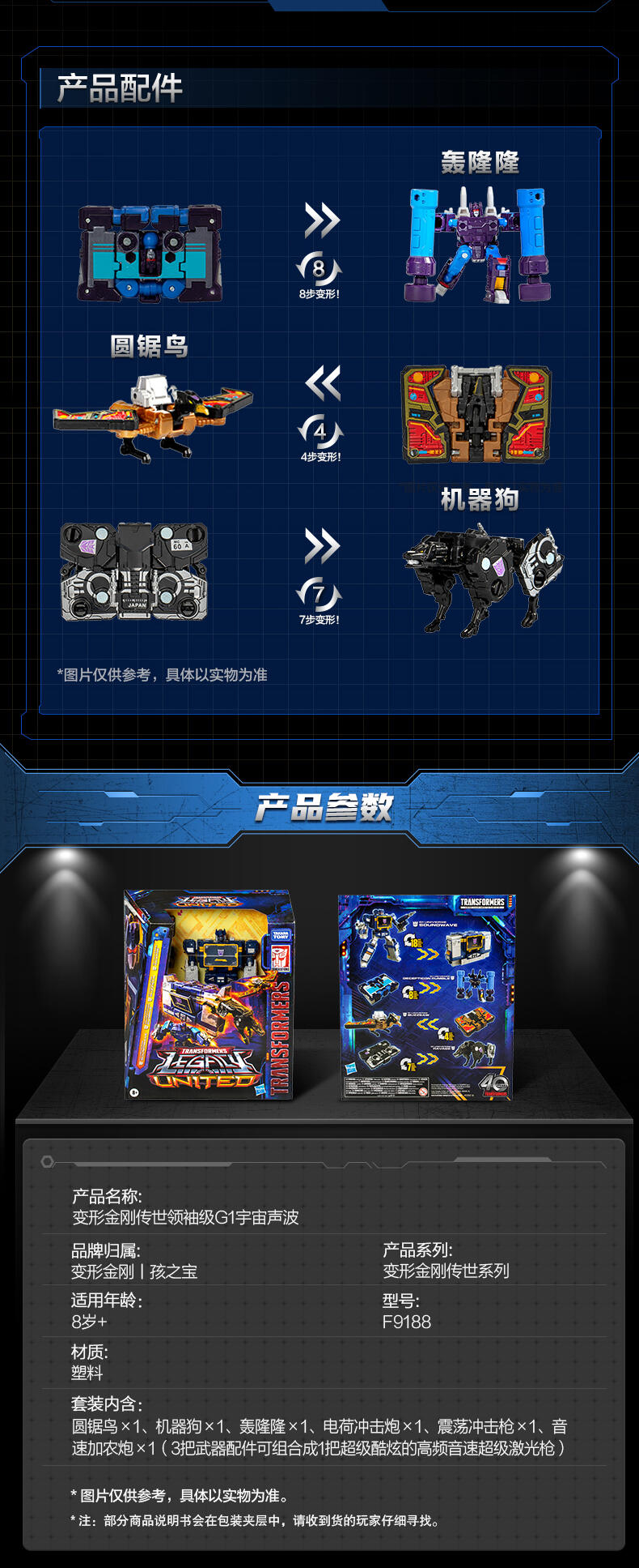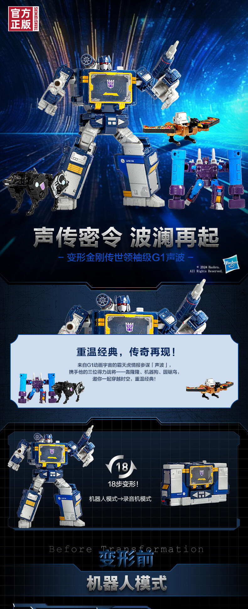 使用Transformers Legacy United Voyager G1级宇宙声波动作人偶,将来自变形金刚机器人世界各地的您喜欢的角色联合到您的收藏中!这款7英寸的G1宇宙声波动作人偶可在18个步骤中在机器人和卡带播放器模式之间进行转换。它附带了G1 Universe Buzzsaw、Ravage和霸天虎Rumbler数字,这些数字可以通过4、7和8步转换为盒式磁带。G1宇宙声波人物的灵感来自动画系列《变形金刚》中的角色,其头部、手臂和腿关节清晰,可以摆出令人惊叹的动作姿势。用变形金刚传奇动作人偶庆祝变形金刚历史的最后40年。