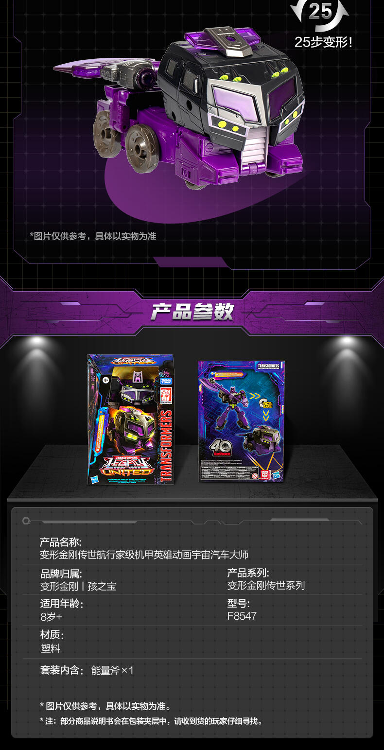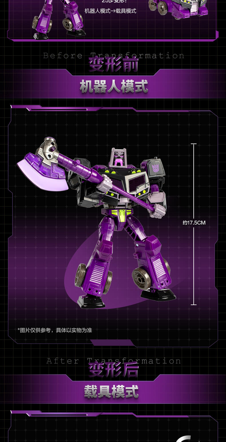 使用变形金刚Legacy United Voyager Class Transformers:Animated Universe霸天虎Motormaster动作人偶,将来自变形金刚机器人世界各地的您喜欢的角色联合到您的收藏中!这个7英寸的动画宇宙霸天虎Motormaster动作人偶可以在25个步骤中在机器人和卡车模式之间转换。使用随附的斧头配件为战斗做好准备。《变形金刚:动画宇宙霸天虎赛车手》人物的灵感来自《变形金刚:动画片》系列中的角色,其头部、手臂和腿关节清晰,动作姿势令人惊叹。用变形金刚传奇动作人偶庆祝变形金刚历史的最后40年。《变形金刚遗产》开启了一个全新的世界——超越眼前——将你从未见过的每一代变形金刚聚集在一起。收集并组合不同的角色,以创建您理想的遗产阵容。