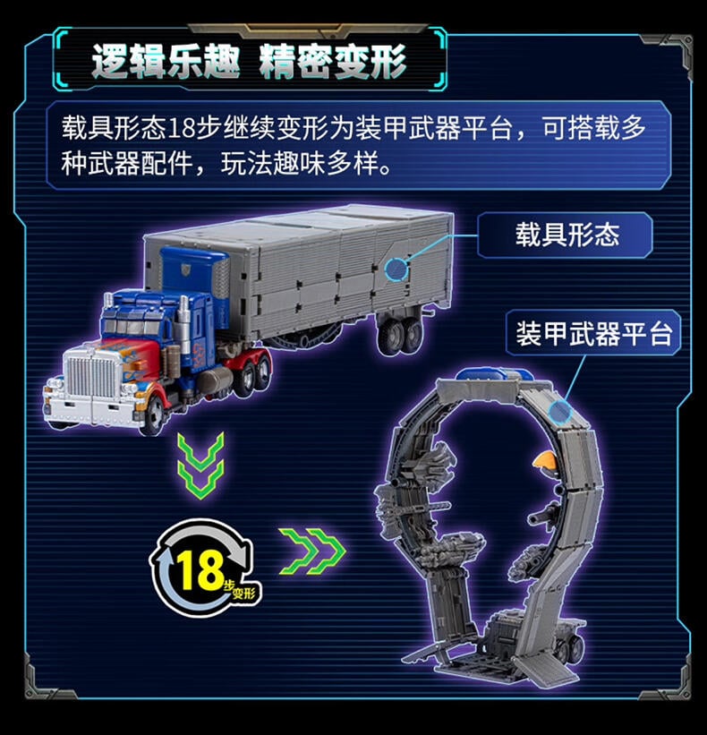 - 来自大银幕的灵感:擎天柱玩具大小还原了该角色在《变形金刚:月之暗面》中的尺寸。将动作模型置于描绘芝加哥之战场景的可拆卸背景前,摆出造型