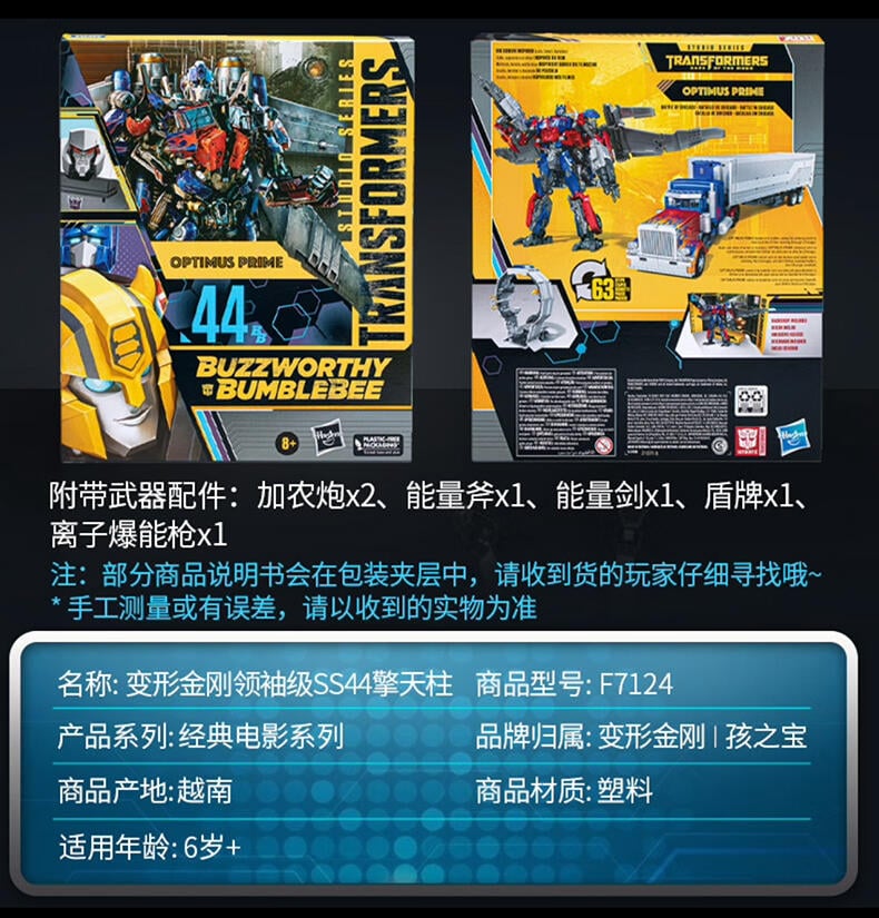 - 21.5 cm 擎天柱:变形金刚电影工作室 44BB 领袖擎天柱动作模型具有灵感源于电影的涂装和细节。 随附拖车和 5 个武器配件