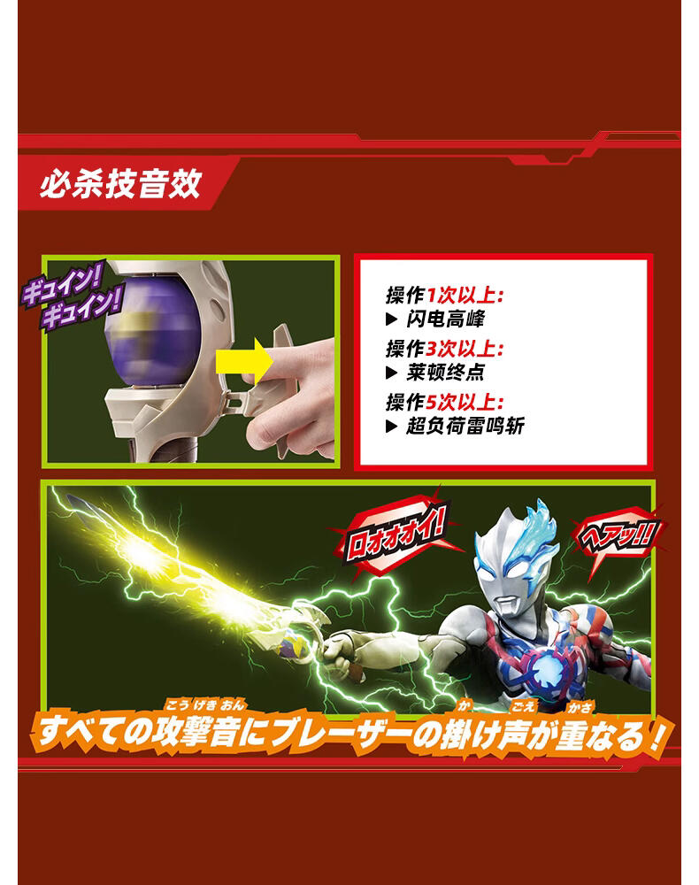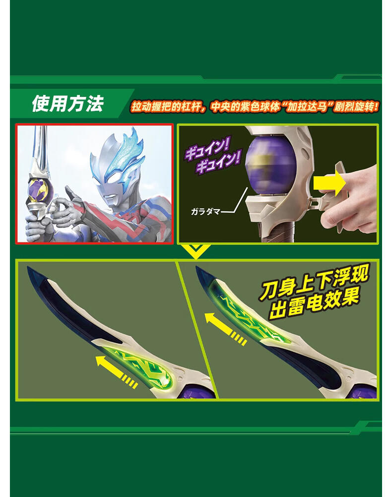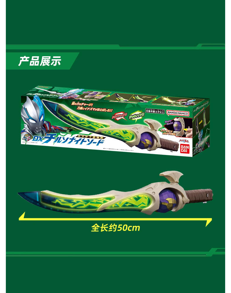 DX奇尔索辉石剑是布莱泽奥特曼使用的武器,可发光、发声、回旋,全长约50cm,内含丰富玩法,快来试试战斗的力量吧!