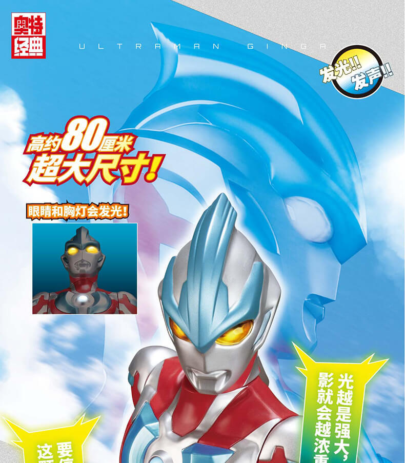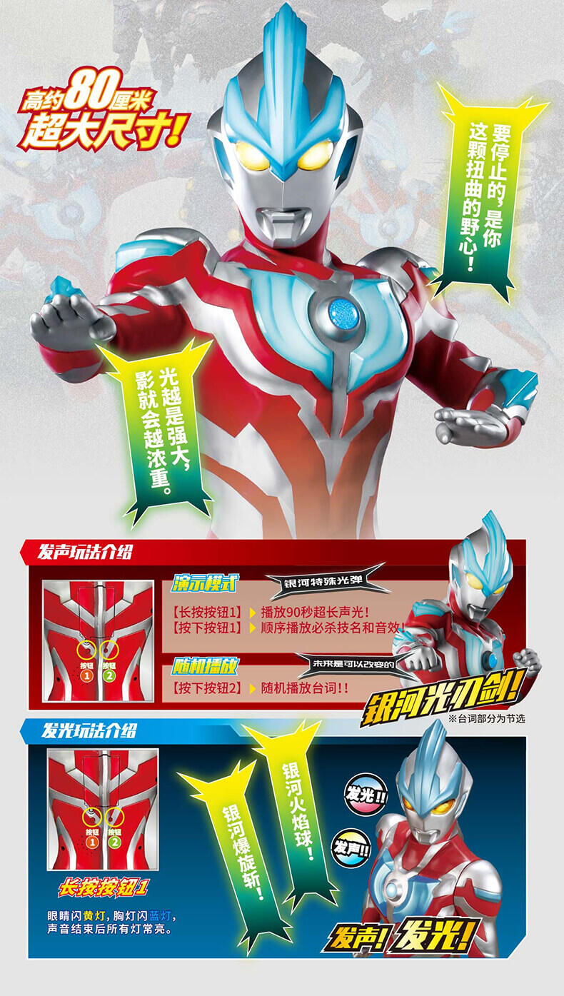 高约80CM大尺寸银河奥特曼,眼睛闪黄灯,胸灯闪蓝光,声音结束后所有灯常亮。