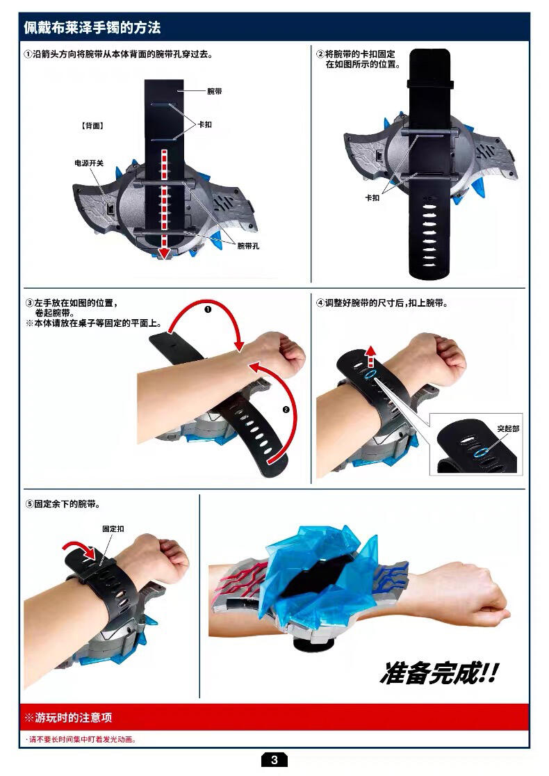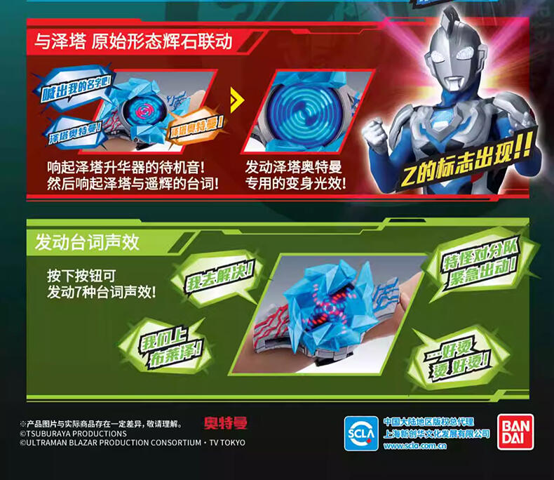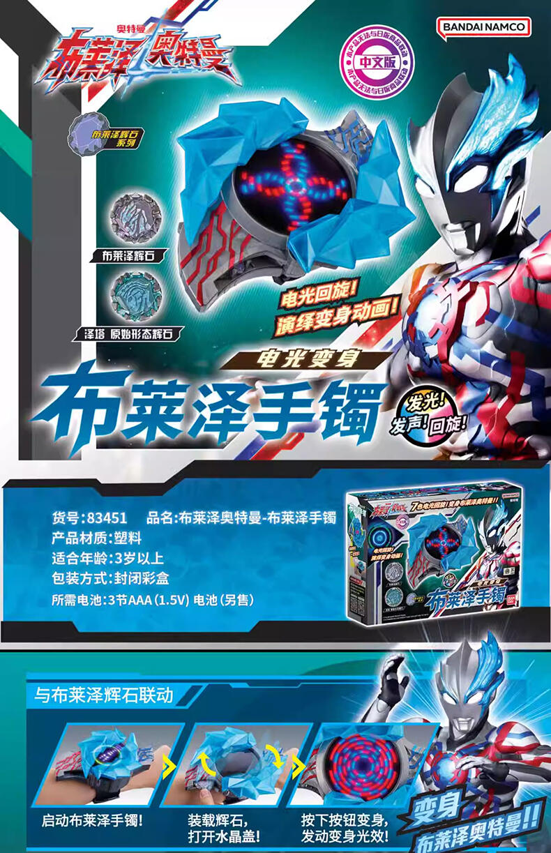 布莱泽奥特曼-布莱泽手镯可发光发声,装入不同辉石后会播放不同的画面及发出不同的音效