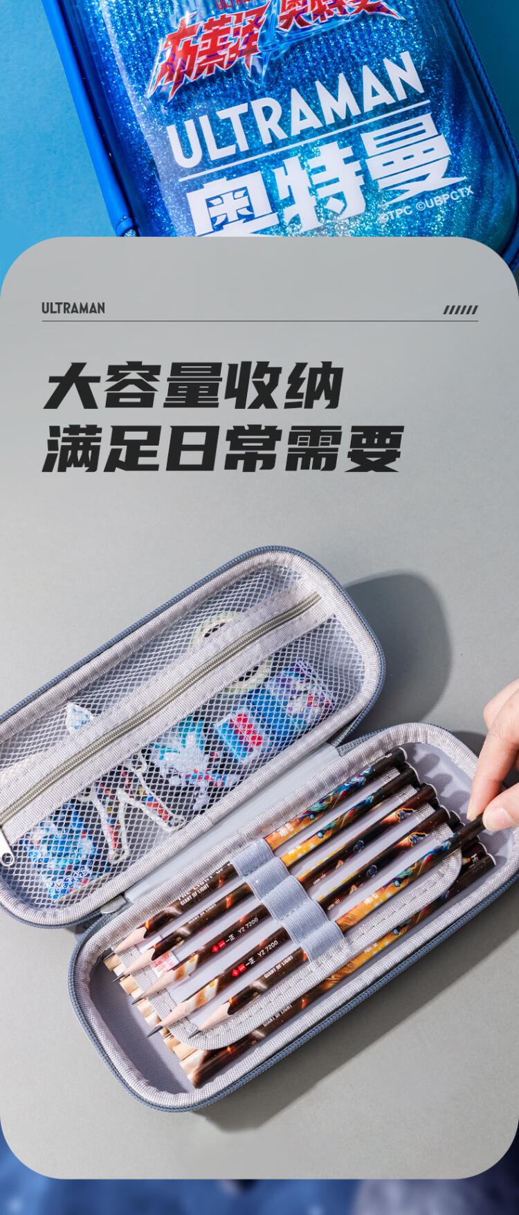 奥特曼正版授权产品,精致美观又耐用,防水耐脏,配套优质拉链,开合不伤手,笔插固定带可固定保护贵重笔类不跑位磕碰