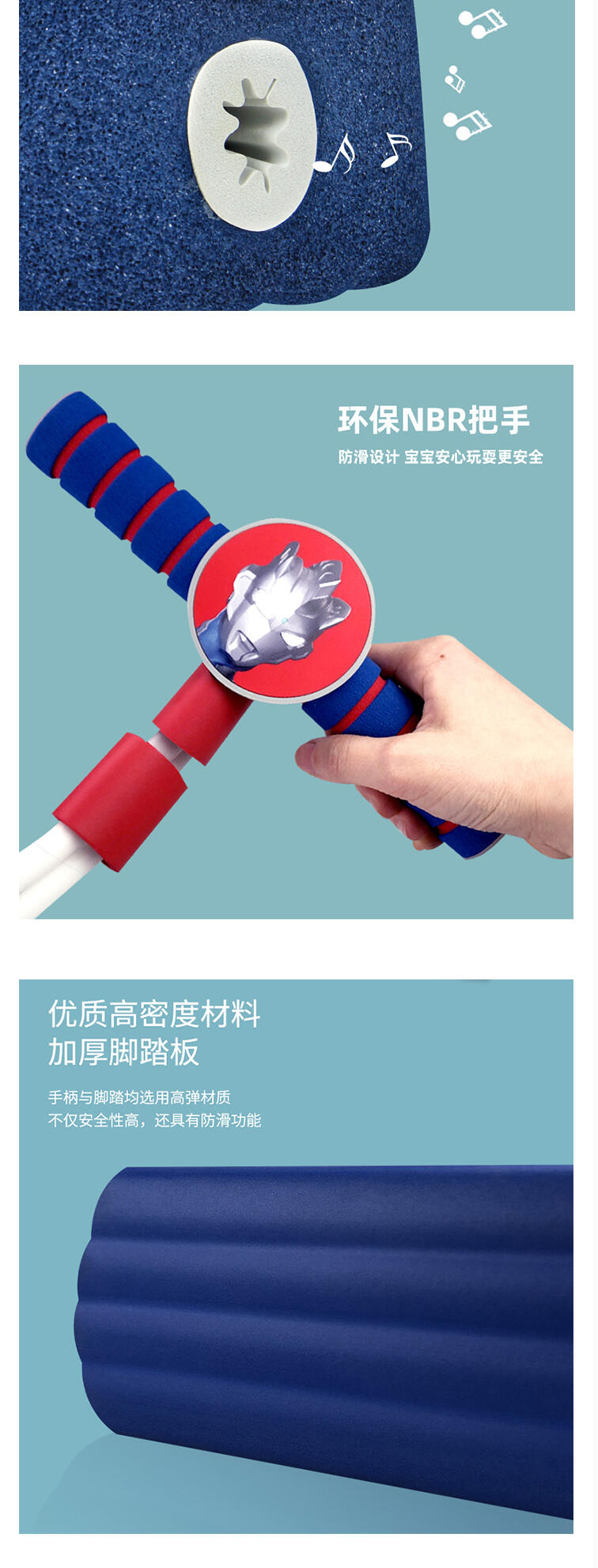 奥特曼IP产品,优质高密度材料,加厚脚踏板,环保防滑把手,内置发声器,三倍拉伸,快乐成长