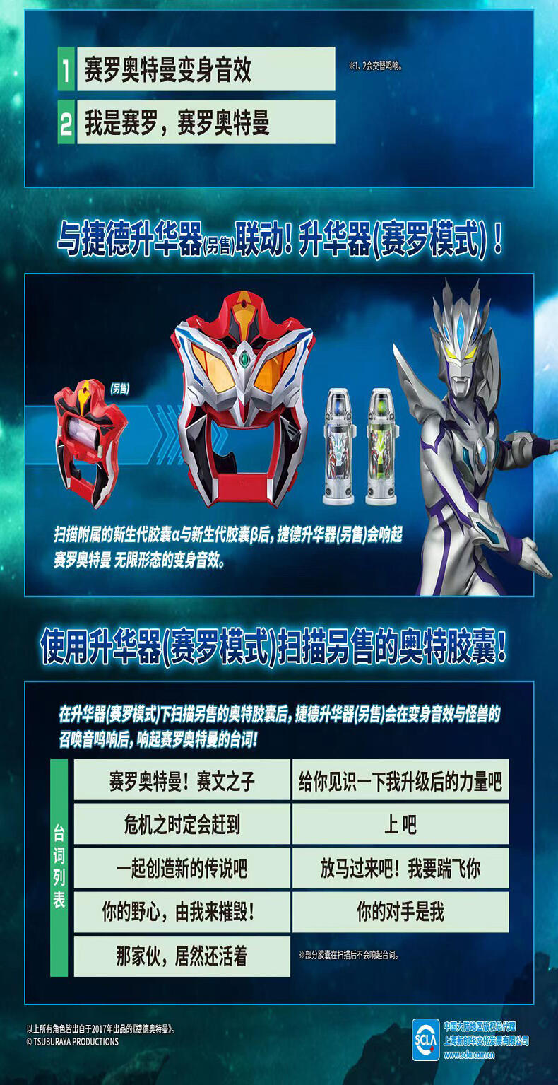 可循环播放变身音效和台词,可与捷德升华器(另售)联动