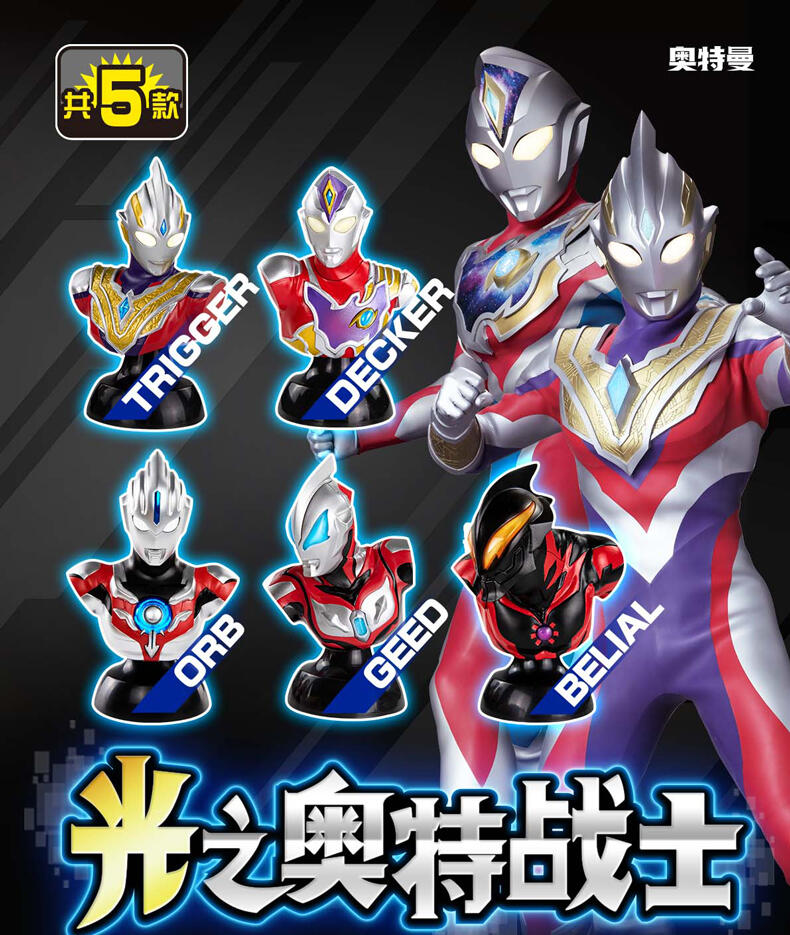 光之奥特战士共5个角色,做工精细,造型独特,眼睛可发光,可供摆设,值得收藏。