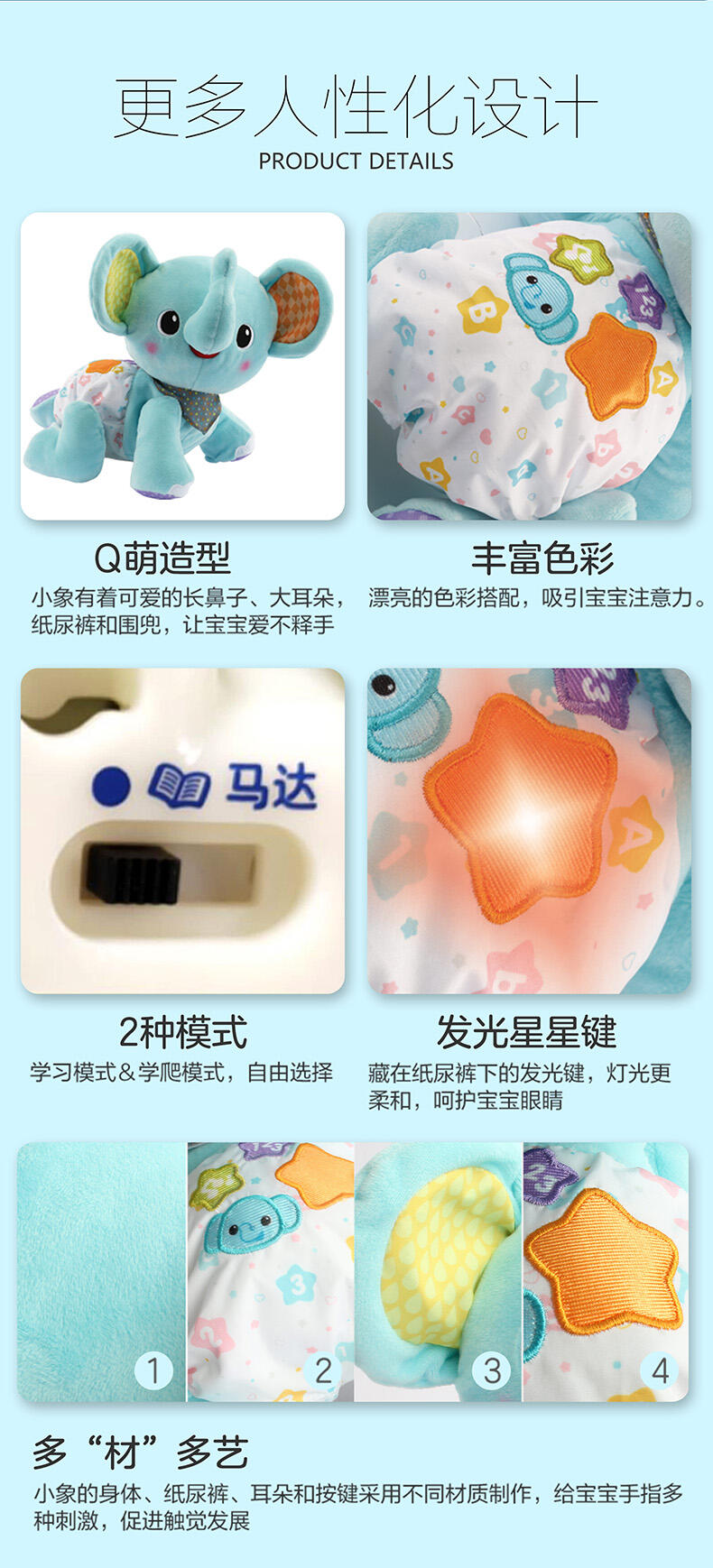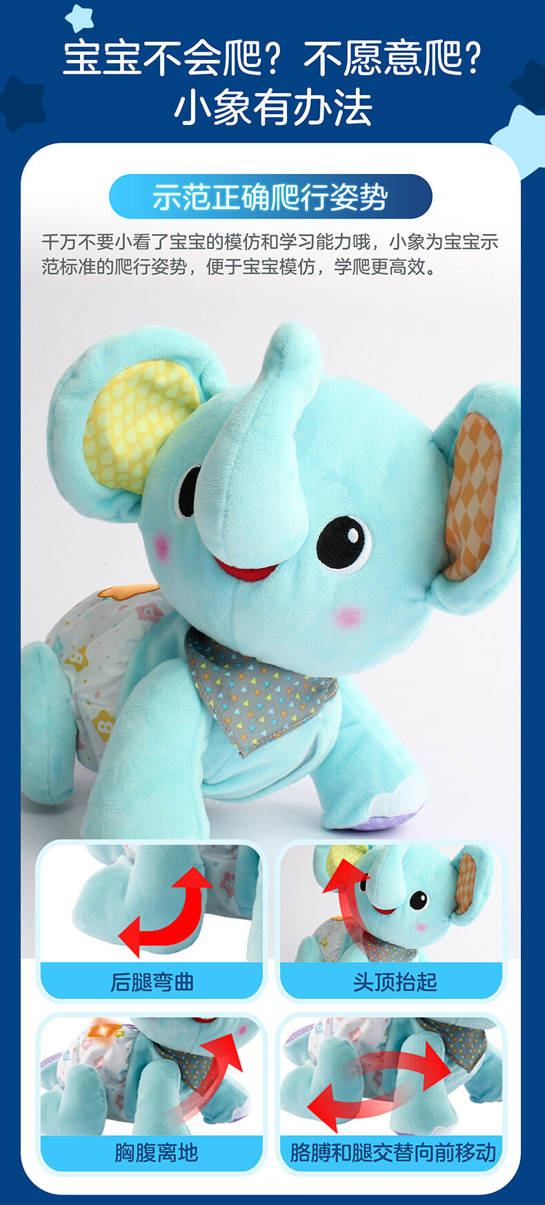 适合宝宝爬行速度,且小象会主动停下等待宝宝跟上再继续爬行