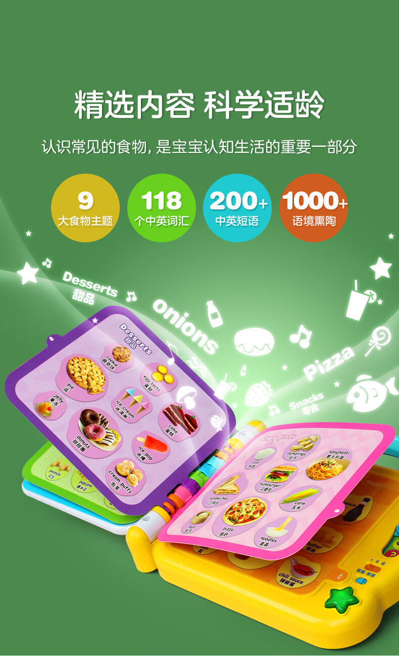 9大食物主题,118个中英词汇,200+中英短语,1000+语境熏陶。三大模式,进阶学英语。点触发声,即点即读。