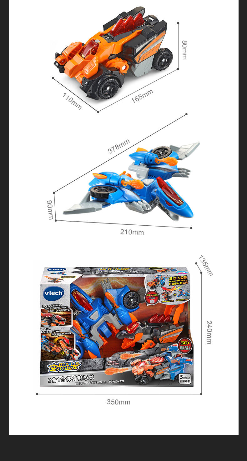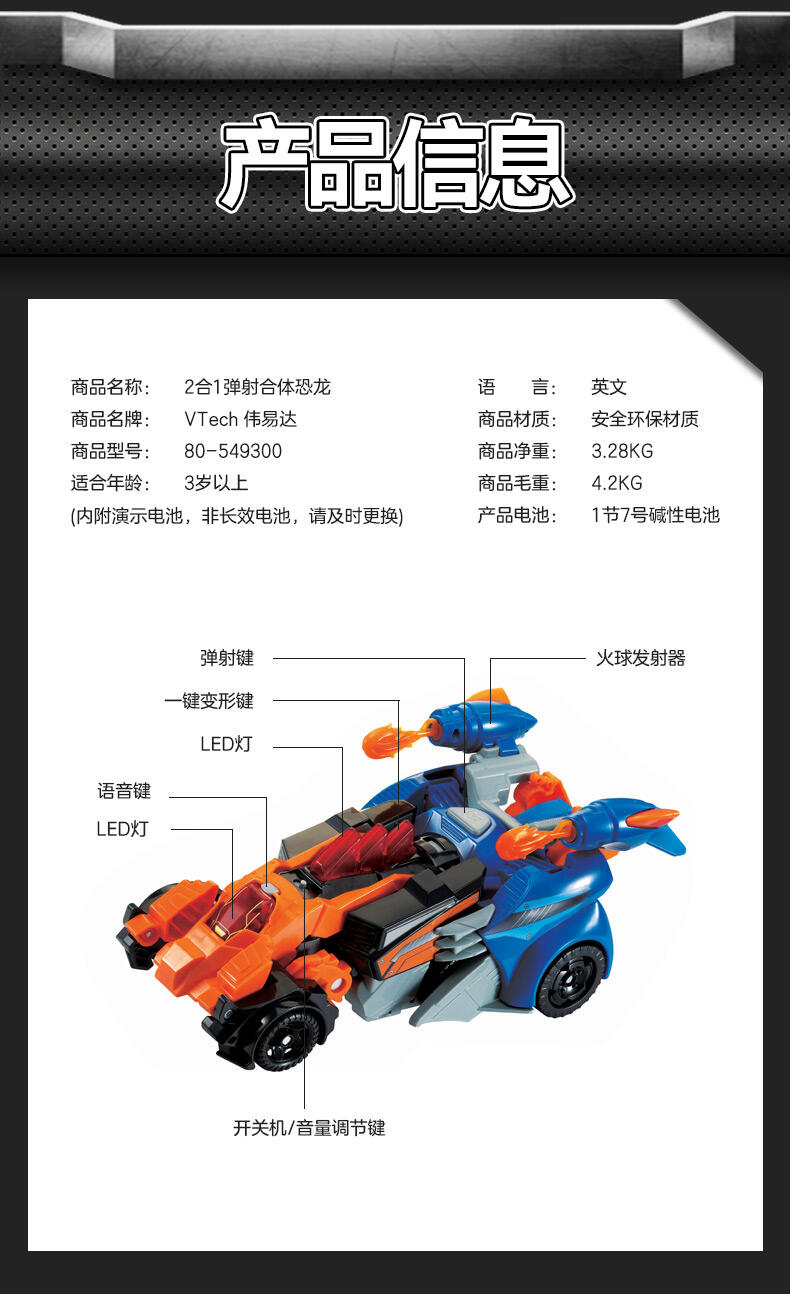 Vtech伟易达-变形恐龙 2合1合体弹射恐龙/蓝色