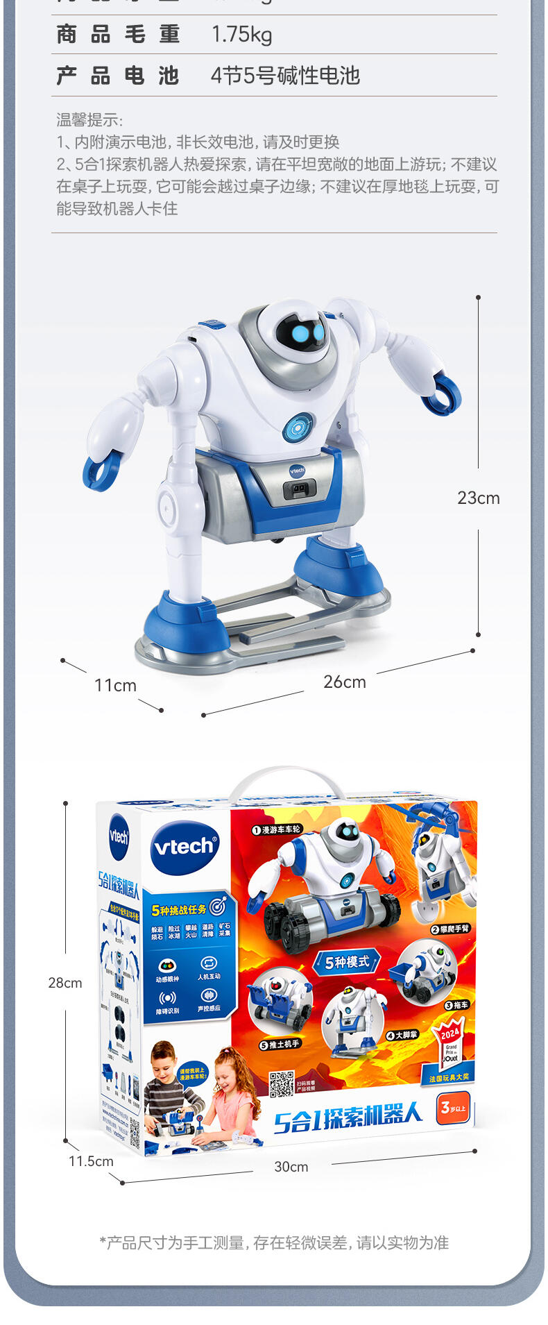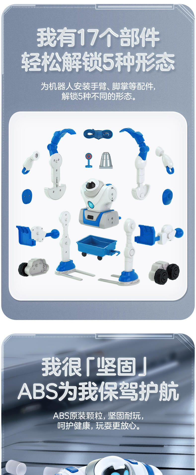 ① 5种形态玩法:漫游车轮、拖车、推土机手、大脚掌、攀爬手臂;
