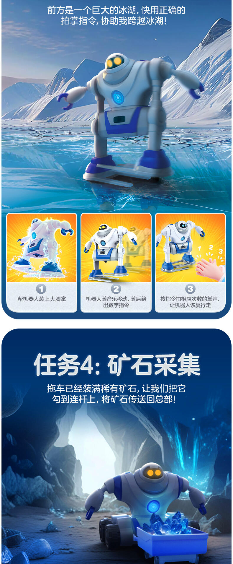 ④5个挑战任务:躲避陨石、险过冰湖、攀越火山、矿石采集、清理路障;