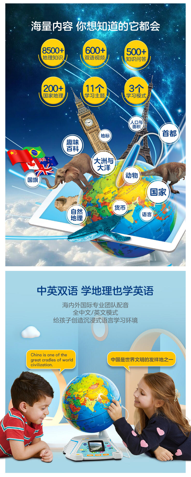 中英双语,内置11个学习主题,学习8500+环球地理知识