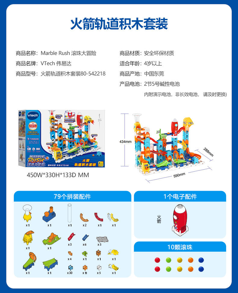 Vtech伟易达 滚珠大冒险 火箭轨道积木套装