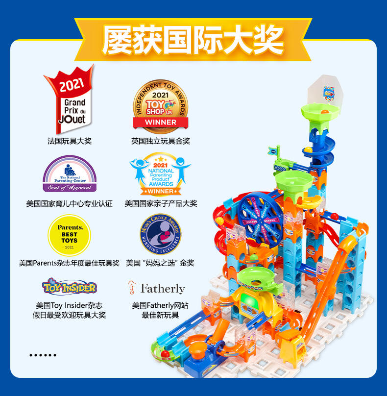 获得美国玩具协会STEAM玩具认证,融入STEAM教育理念的滚珠轨道积木
