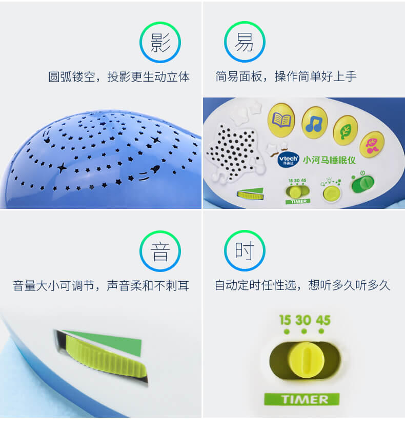 哄睡神器,睡眠安抚,哭声感应,4种音效,四色全景投影。