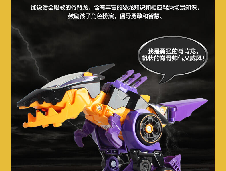 变形恐龙-守护者·棘背龙,会说话,可变形,带炫酷灯光,边玩边学,互动语音。
