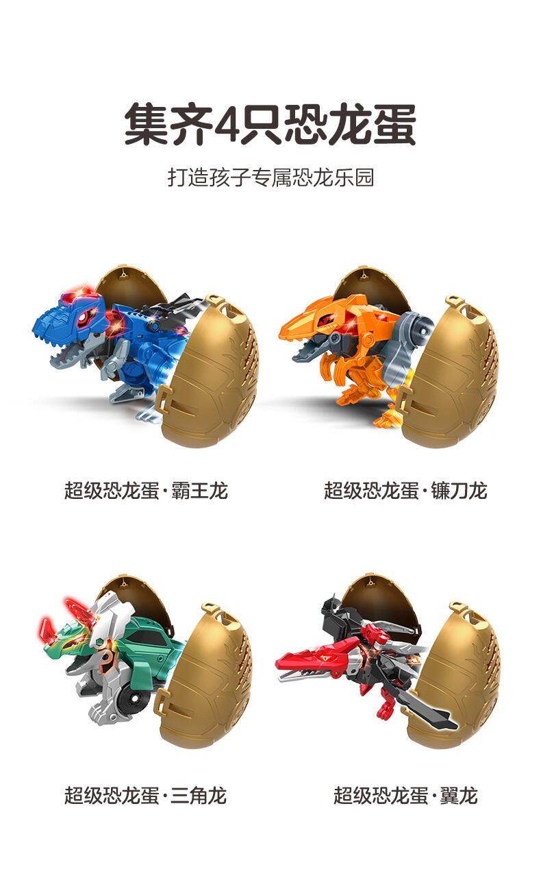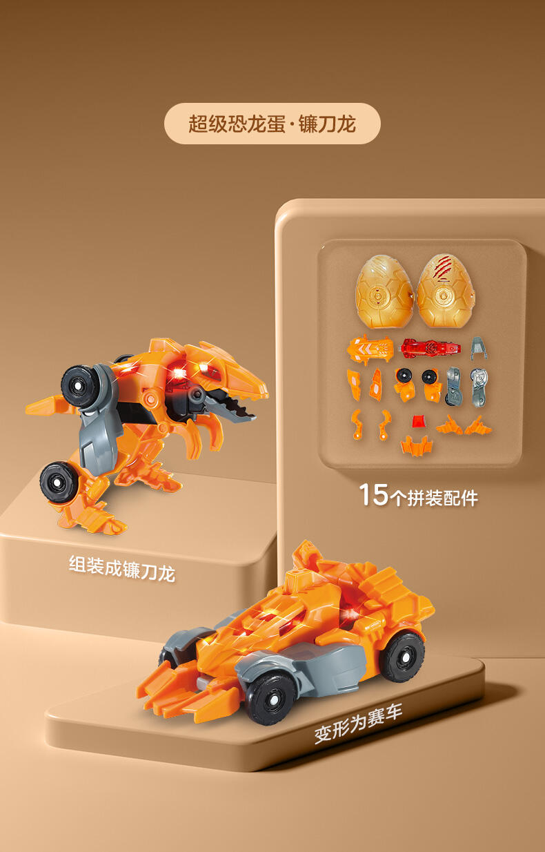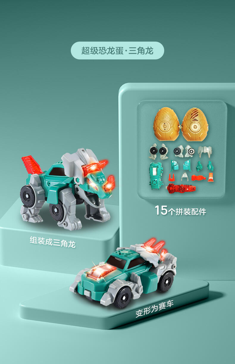 恐龙蛋里有配件,可以组装成恐龙,并且可以变形成汽车,有恐龙和汽车两种形态的语音