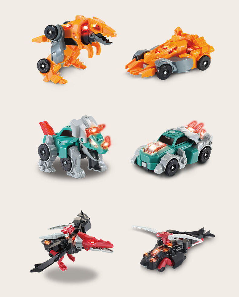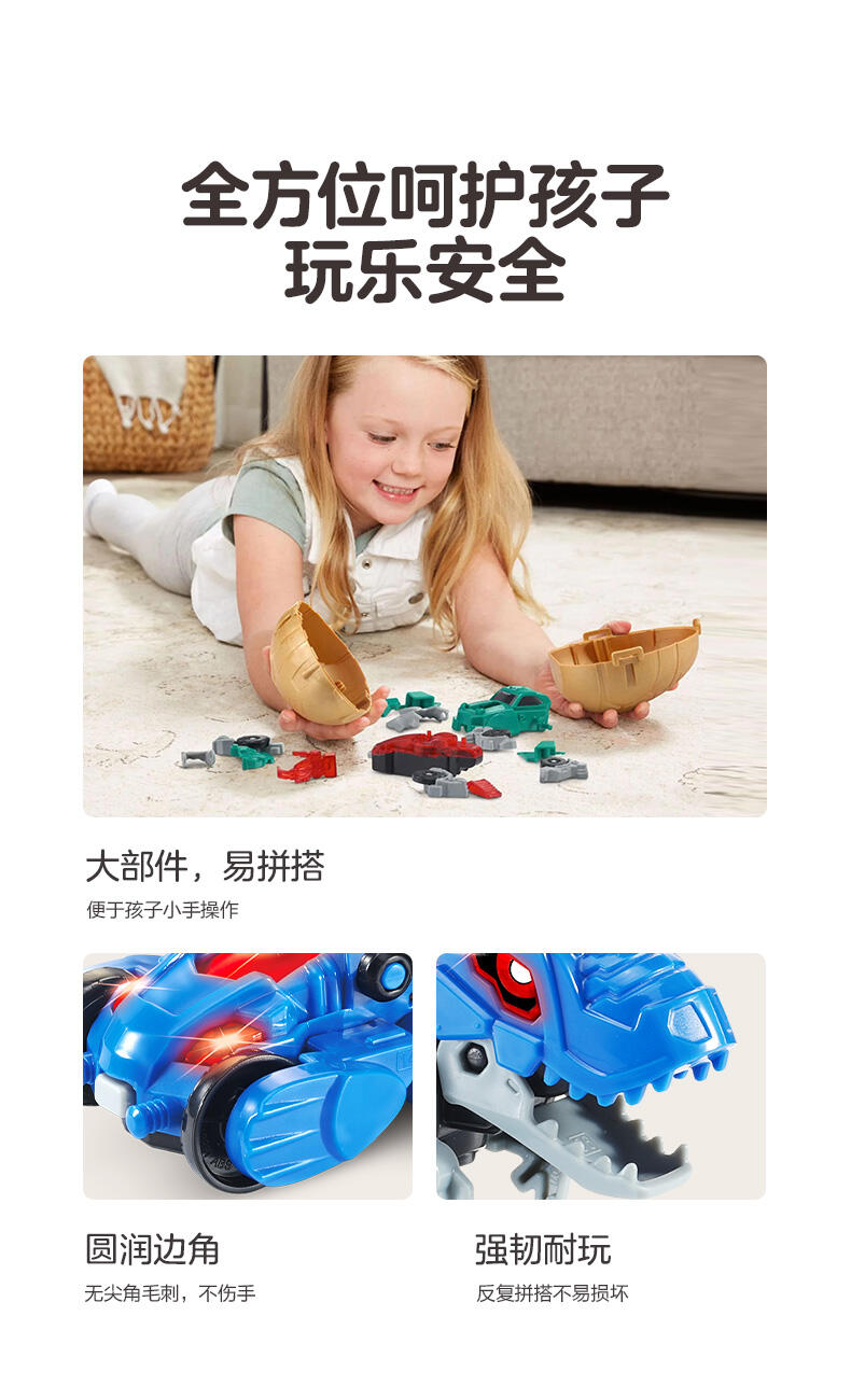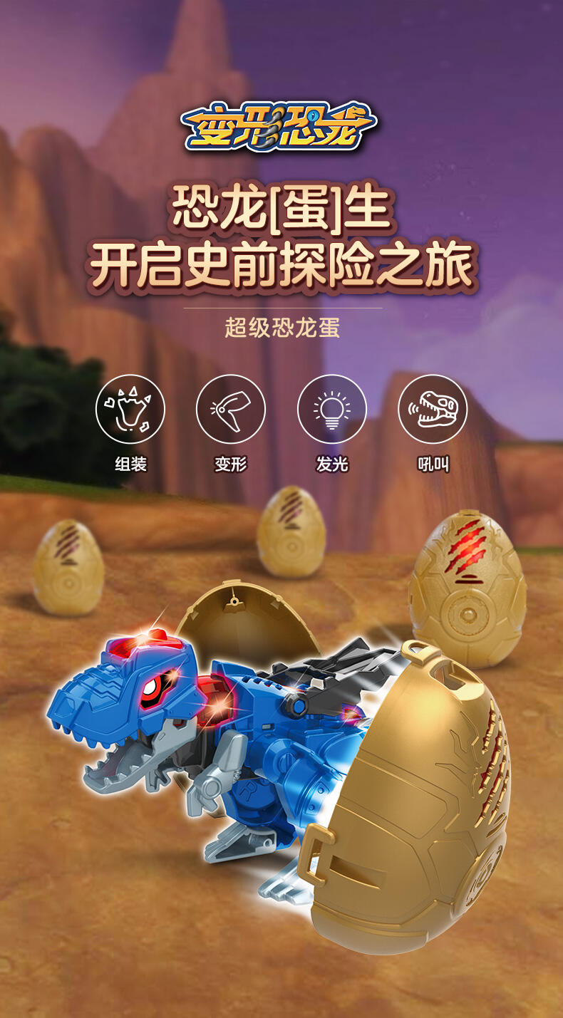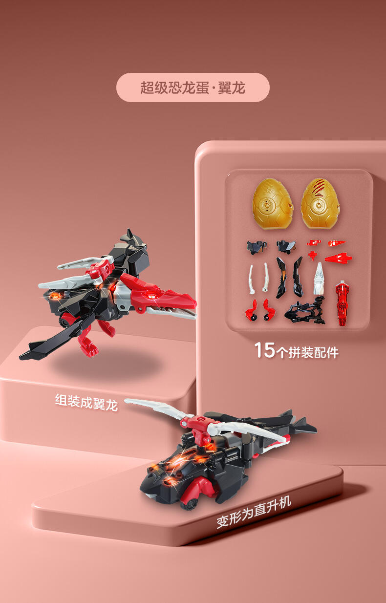 恐龙蛋里有配件,可以组装成恐龙,并且可以变形成汽车,有恐龙和汽车两种形态的语音