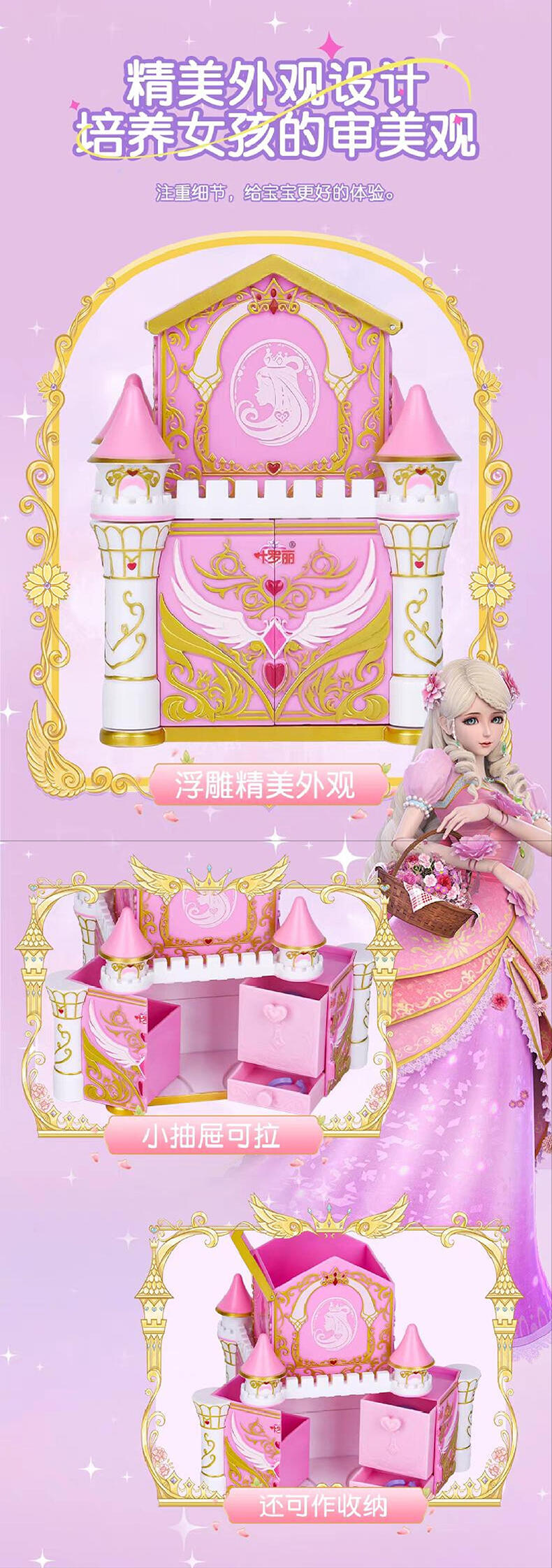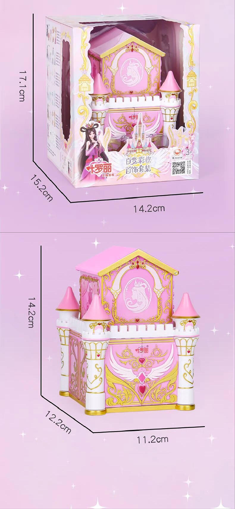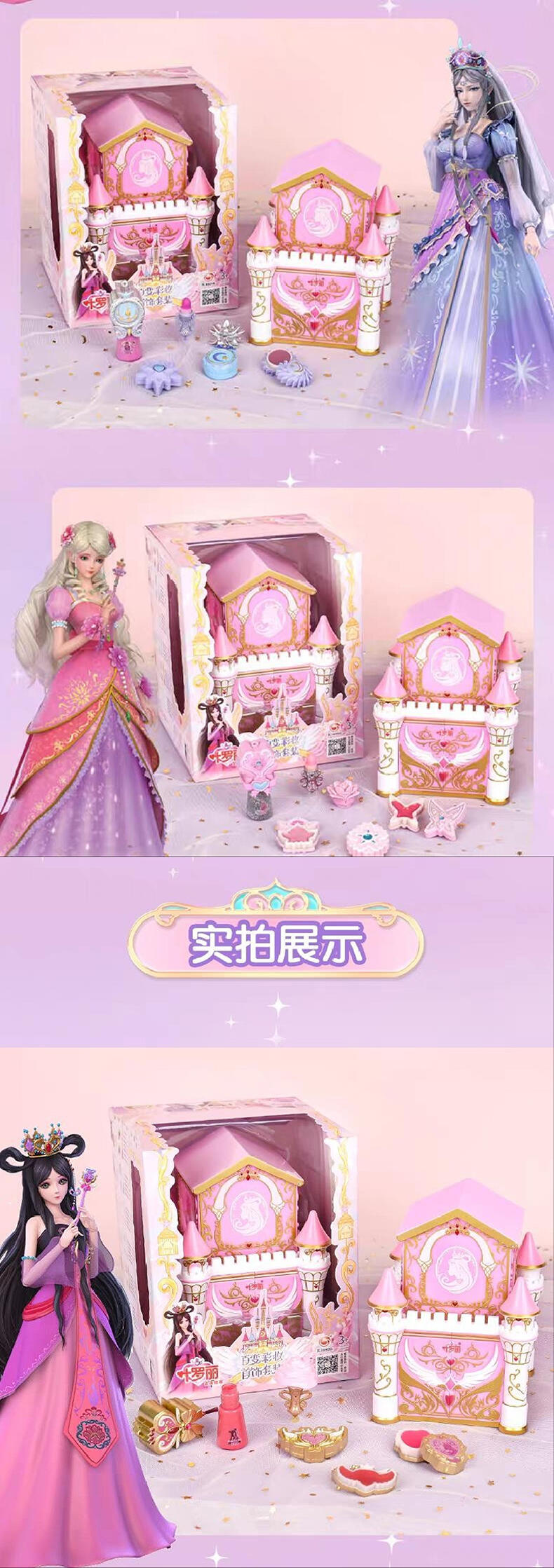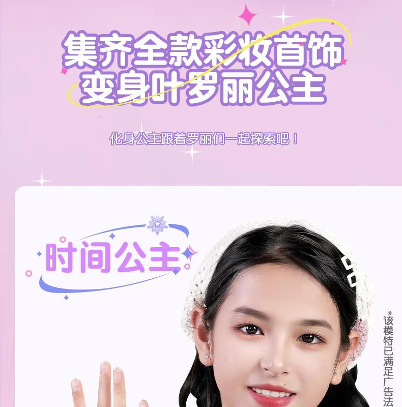 1色唇膏,1色指甲油,1色唇彩,1色眼影膏,1色腮红膏,1个戒指环,1条项链,1条手链,1张说明书,1张贴纸,