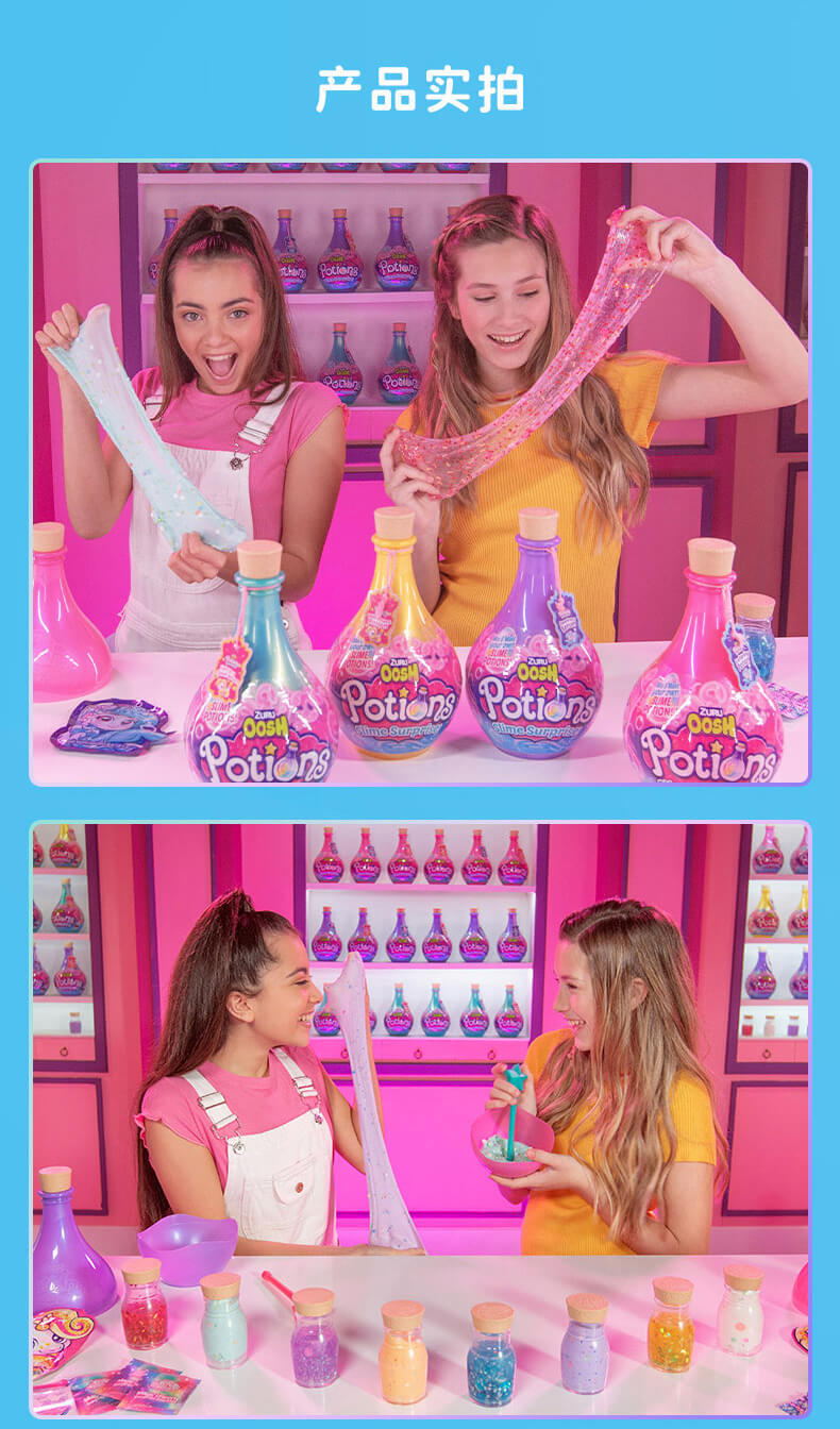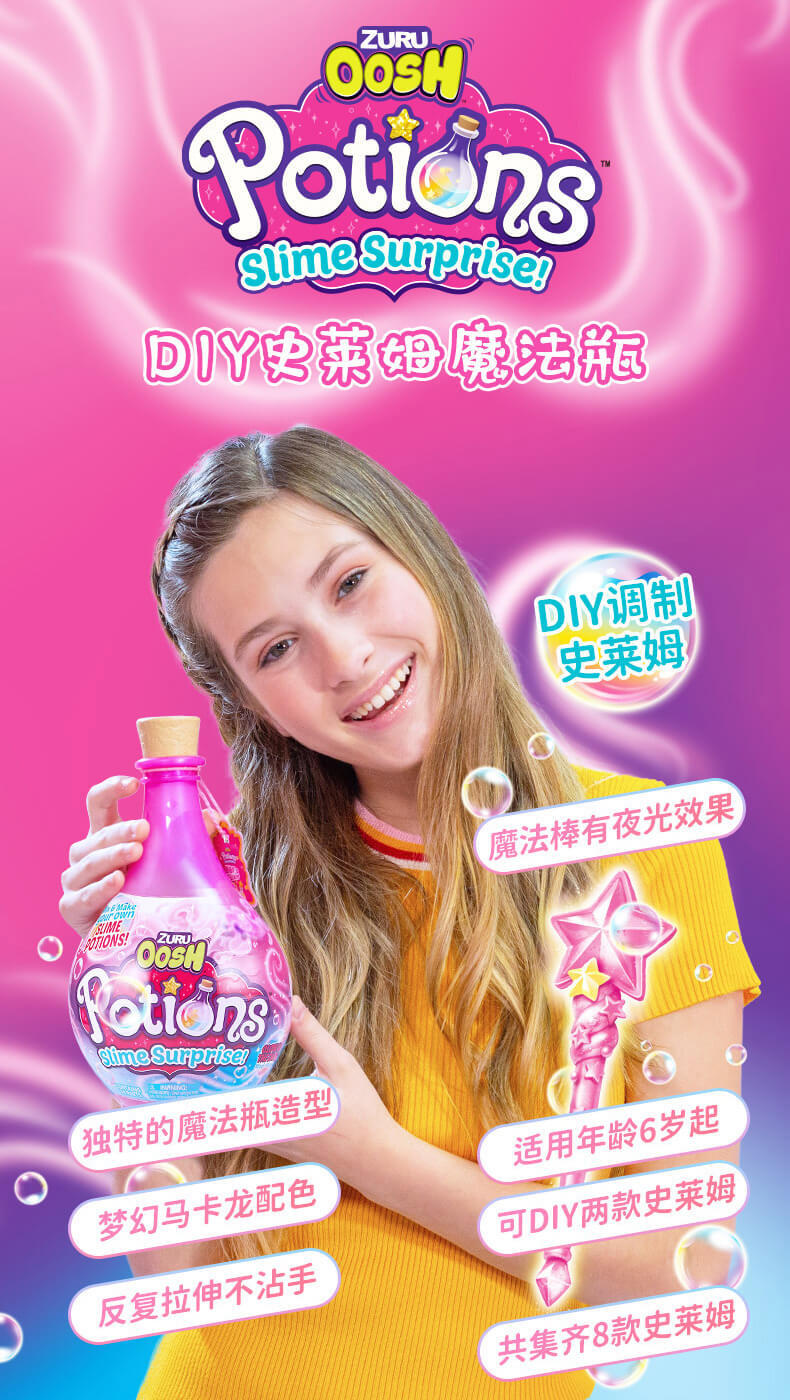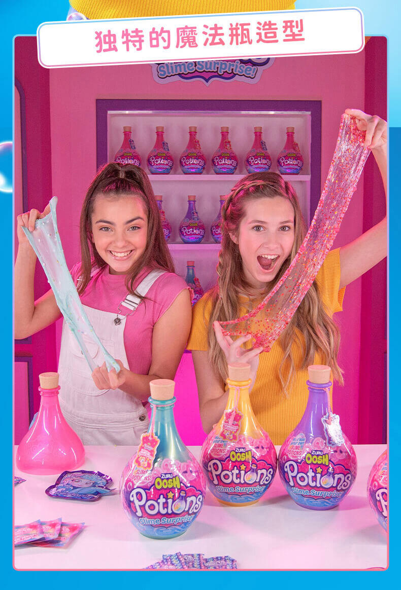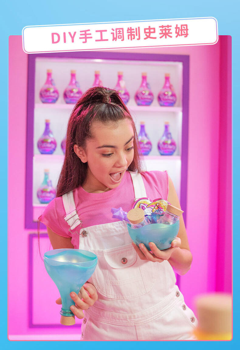 从火花到粘液,还有更多的发现!Zuru Oosh的《新药水史莱姆惊喜》为DIY粘液制作增添了一点魔力。 有4种不同的魔力药水瓶,每瓶内都有两个惊喜药水(单独出售),从BFF的Elixir药水到迷人的魔药,孩子们可以按照自己的魔力配方安排想像力。 只需弹出闪亮的药水瓶,然后将底座用作碗,即可在深色搅拌棒中制作出带有所含辉光的每种药水。 每个具有魔力的药水都有自己的粘稠粉或粉底,三个不同的配件,储物瓶和易于遵循的魔法配方。 让魔术开始吧!