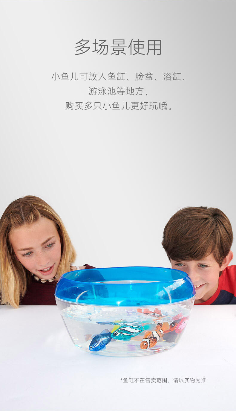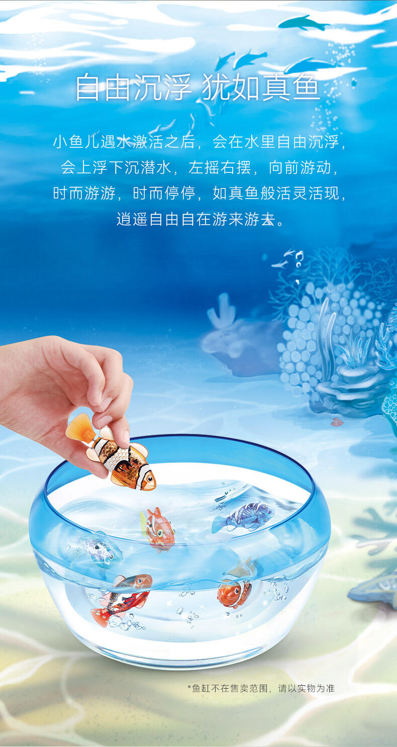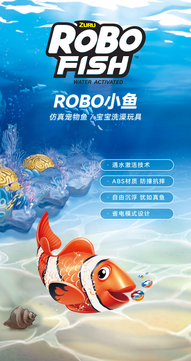 由Robo Alive with a SPLASH设计的新ZURU Robo Fish是有史以来最具标志性的真实机器人游泳宠物!把它们扔到水里,看着它们朝5个不同的方向游泳,然后潜水到6英尺高,因为ZURU的水激活技术让这些鱼像魔法一样栩栩如生!有6种颜色可供收集,它们甚至有水激活的颜色变化!这些逼真的鱼是完美的宠物或恶作剧玩具!