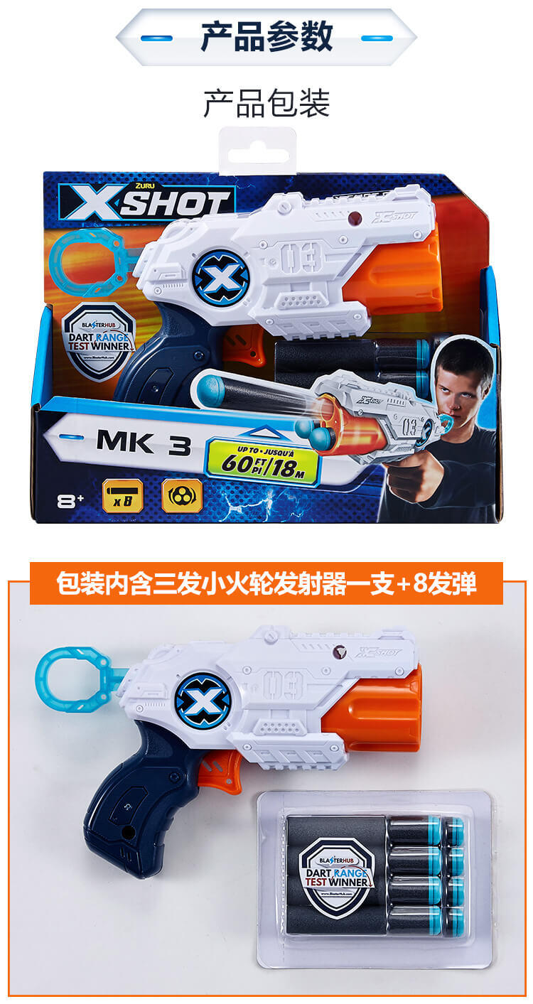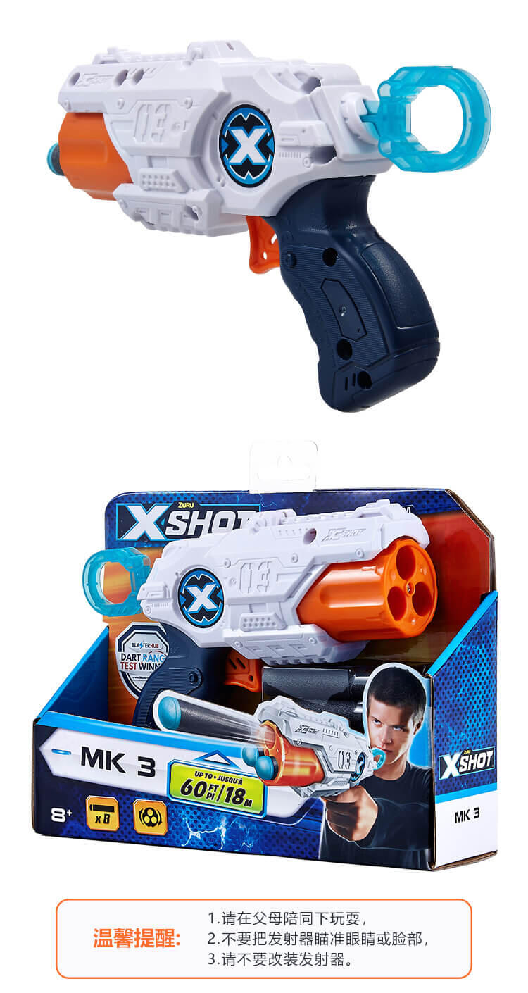 Zuru X Shot MK3 80英尺圆周率,包括8个泡沫镖。爆炸机中心。射程测试冠军。8岁以上。不要瞄准眼睛或脸。旋转桶。快速射击。泡沫飞镖。
