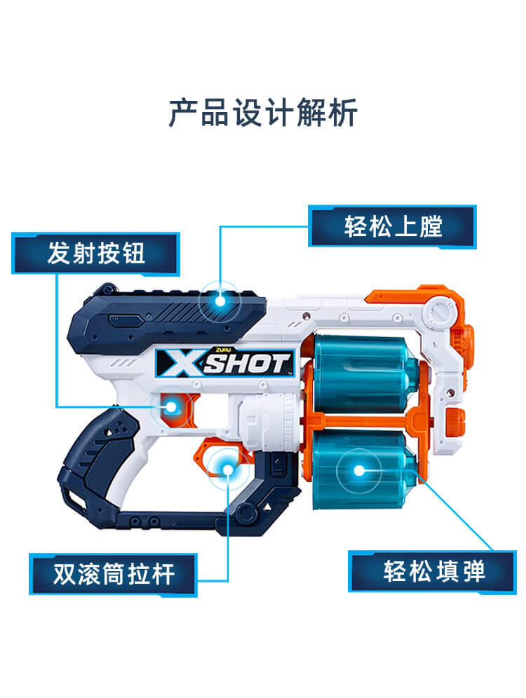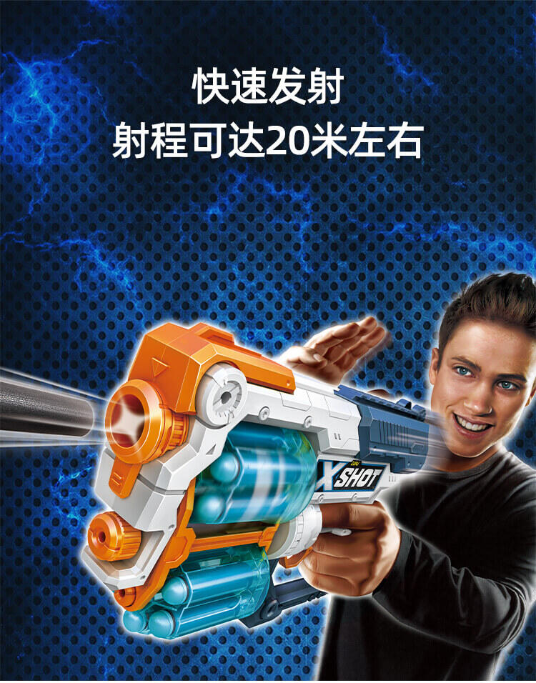 有效射程18米,双滚筒设计,快速发射,快速上膛,快速填弹