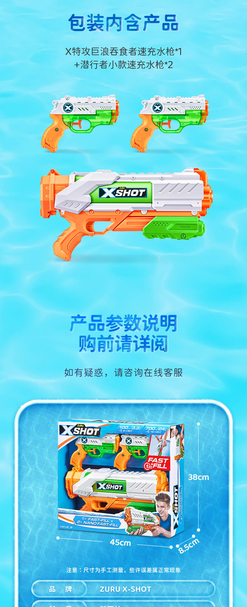 Zuru筑愉 X-Shot X 特攻巨浪吞食者速充水枪潜行者小款速充水枪套装
