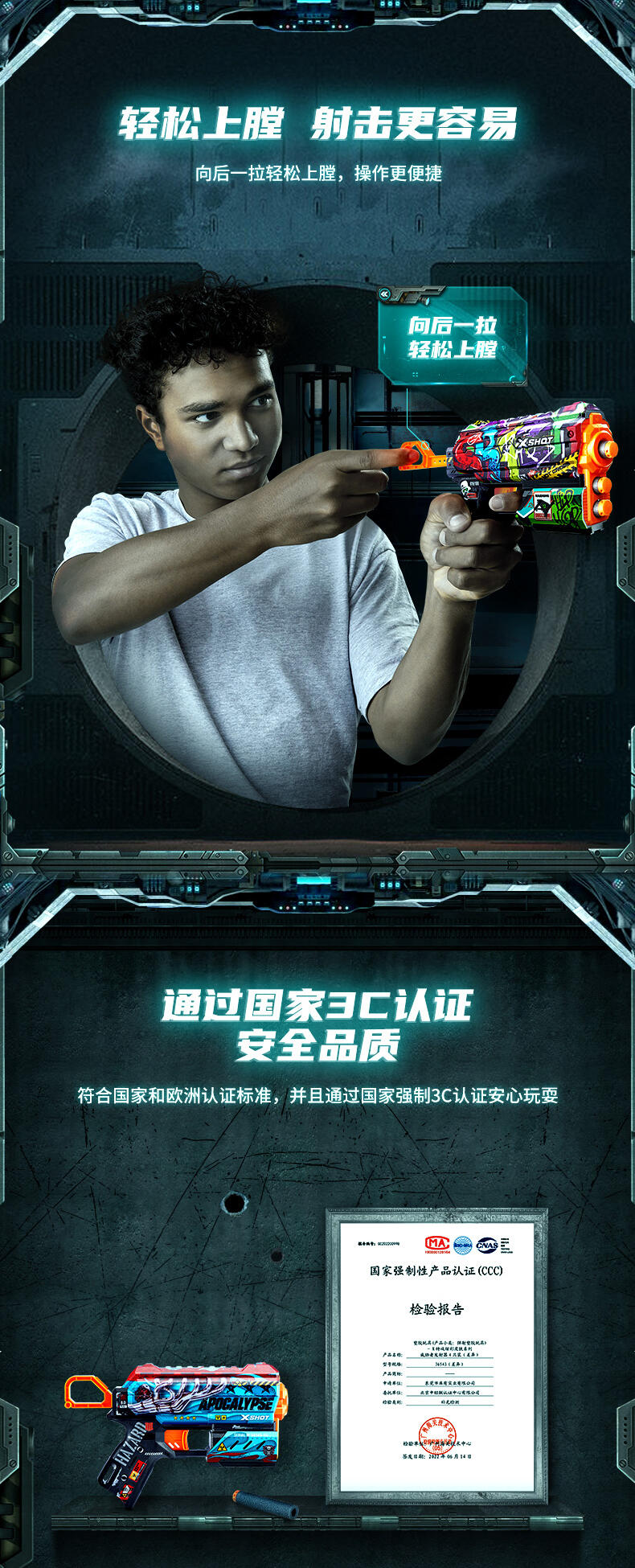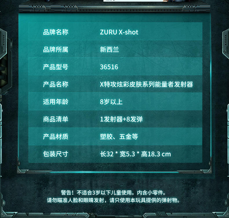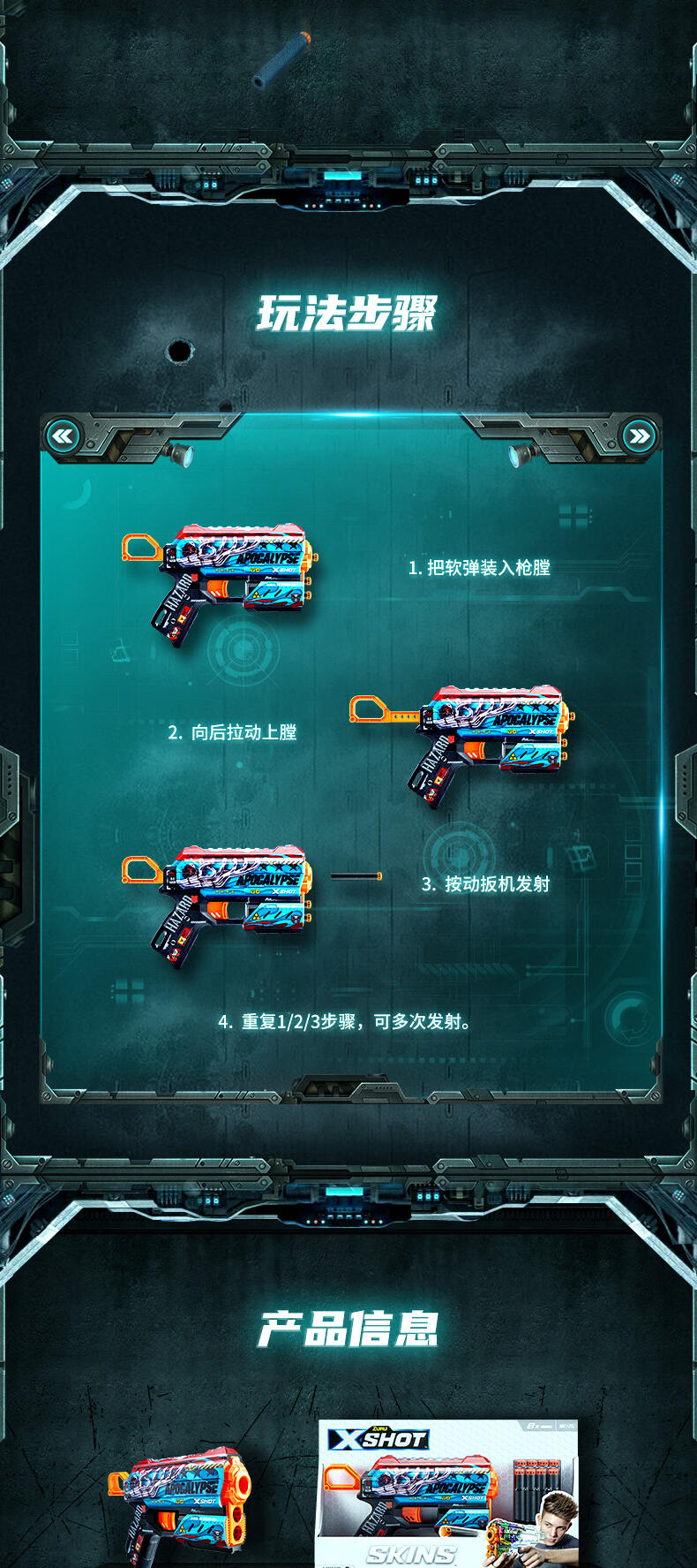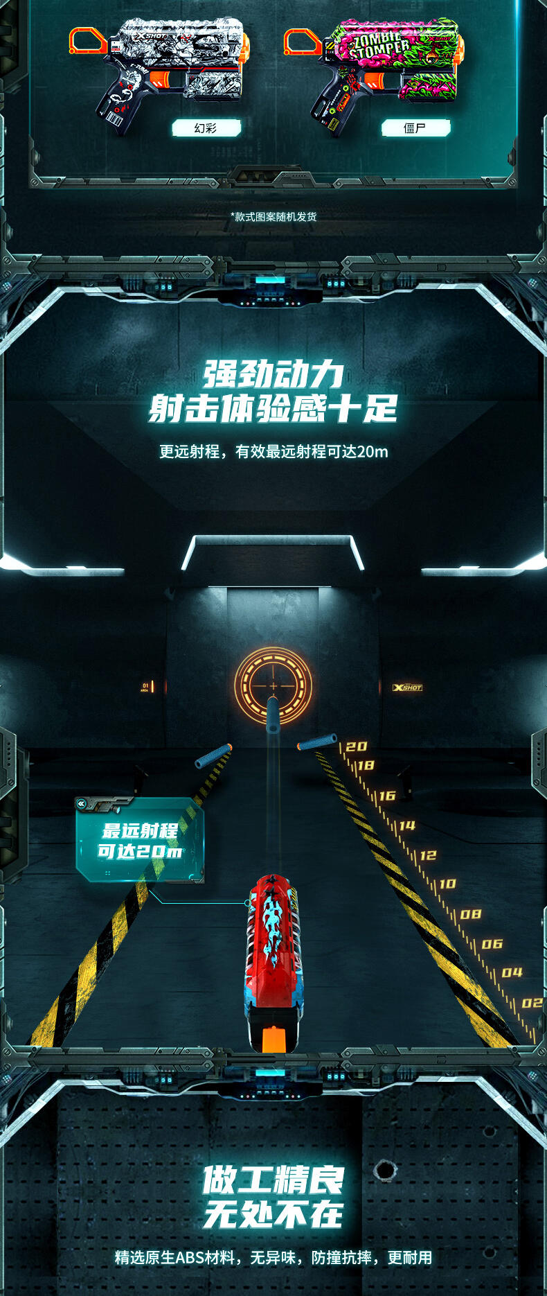 X-Shot 皮肤枪系列将游戏中的皮肤带入现实世界,选择你喜欢的皮肤颜色并加入战斗。使用X-SHOT X特攻炫彩皮肤系列能量者发射器直接进入游戏。凭借单个发射器和 2 个软弹存储位,让你更容易重新为发射器添加软弹,可以随时为战斗做好准备。它可以击中20米远的目标,并在每次射击后反冲以获得最大功率。让你有更好的游戏体验!X-Shot Skins发射器包括新的气囊技术,可实现更快,更远,更准确的射击。X-Shot皮肤通量冲击波有6种独特的皮肤可供选择和收集,快来建立你的终极军械库。